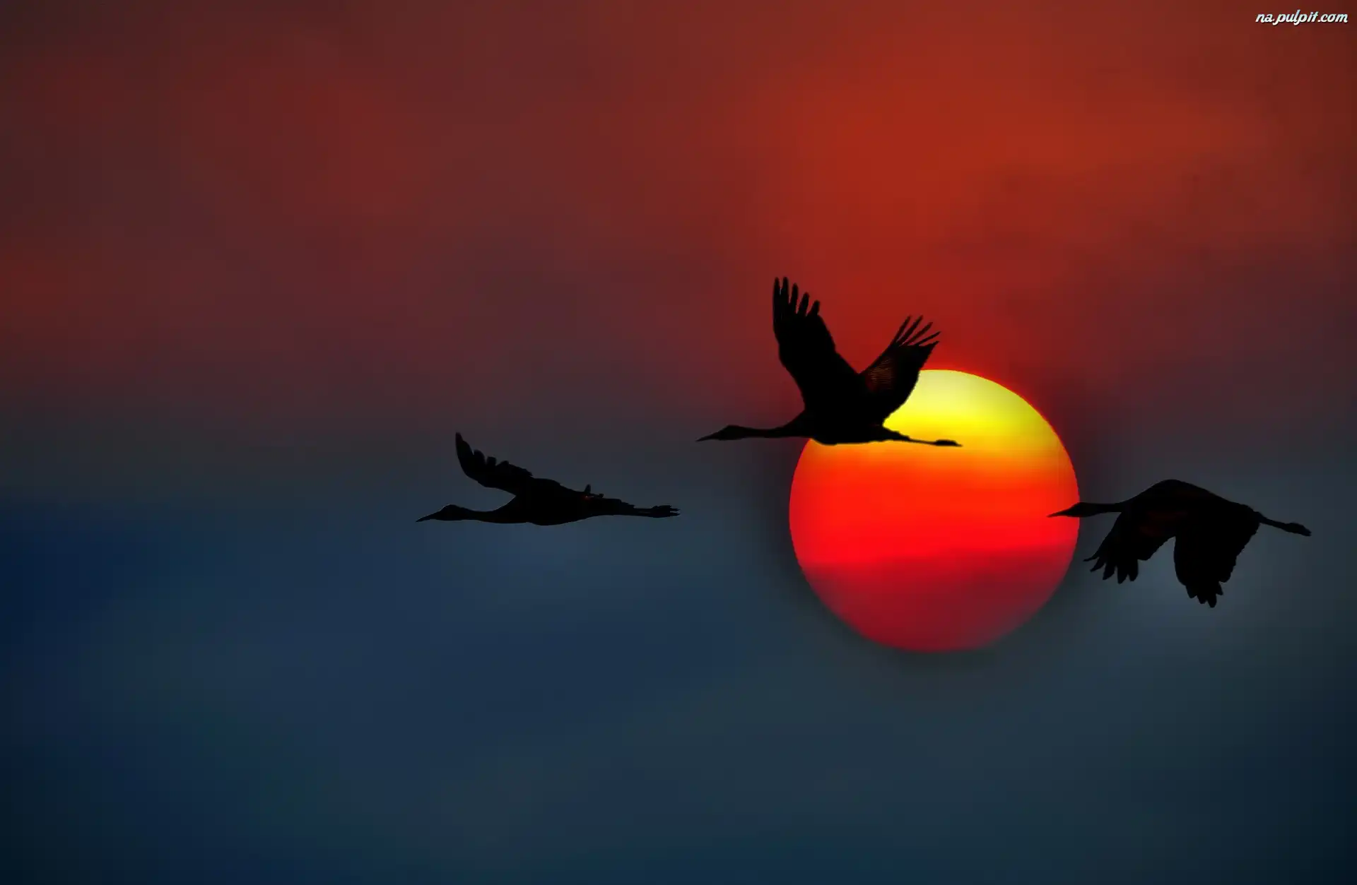 Ptaki, Zachód, Słońca