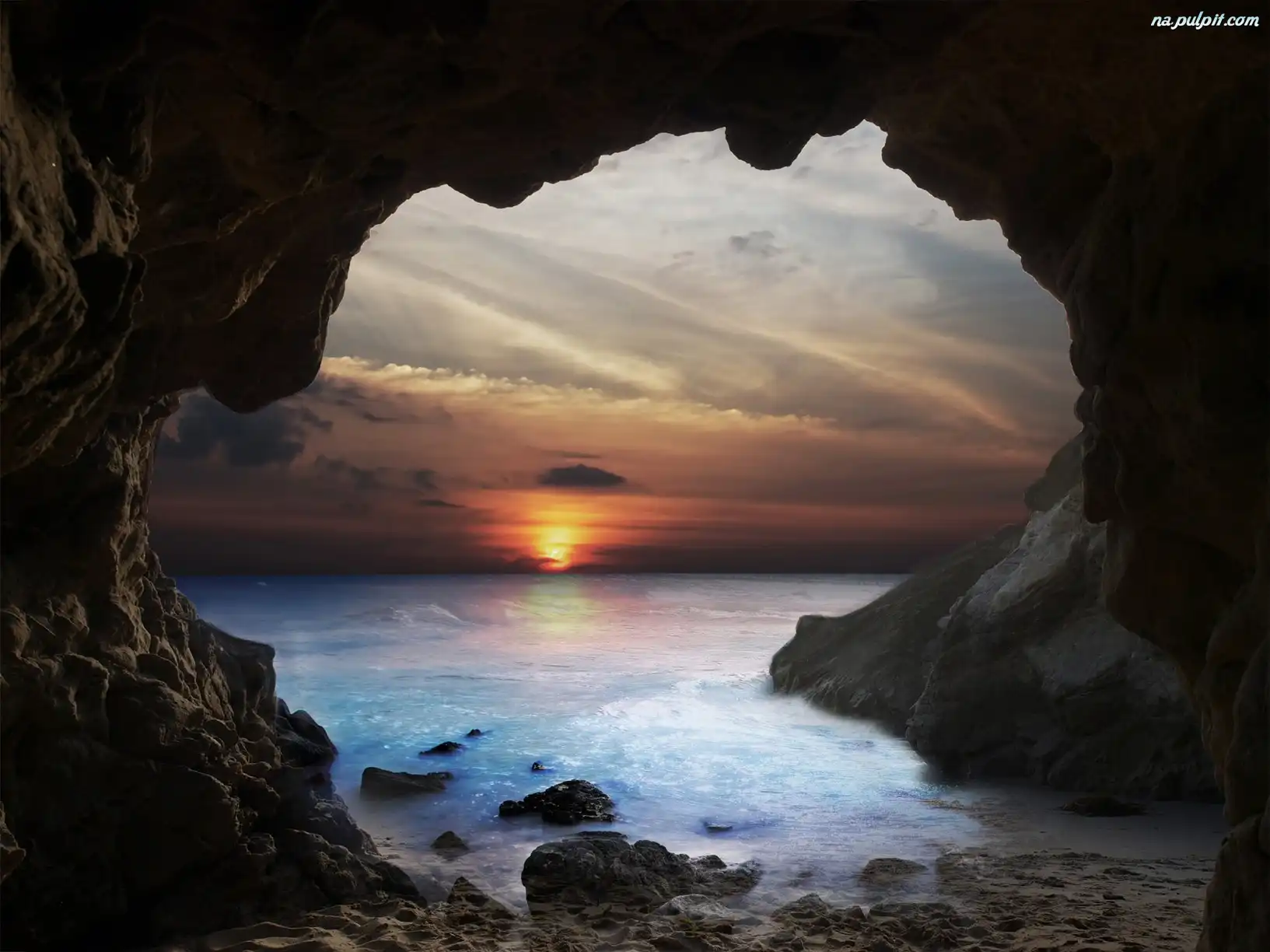 Skała, Zachód, Słońca Na Pulpit