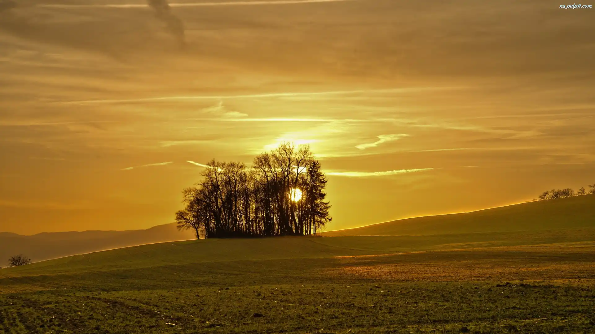 Łąki, Słońca, Zachód, Drzewa
