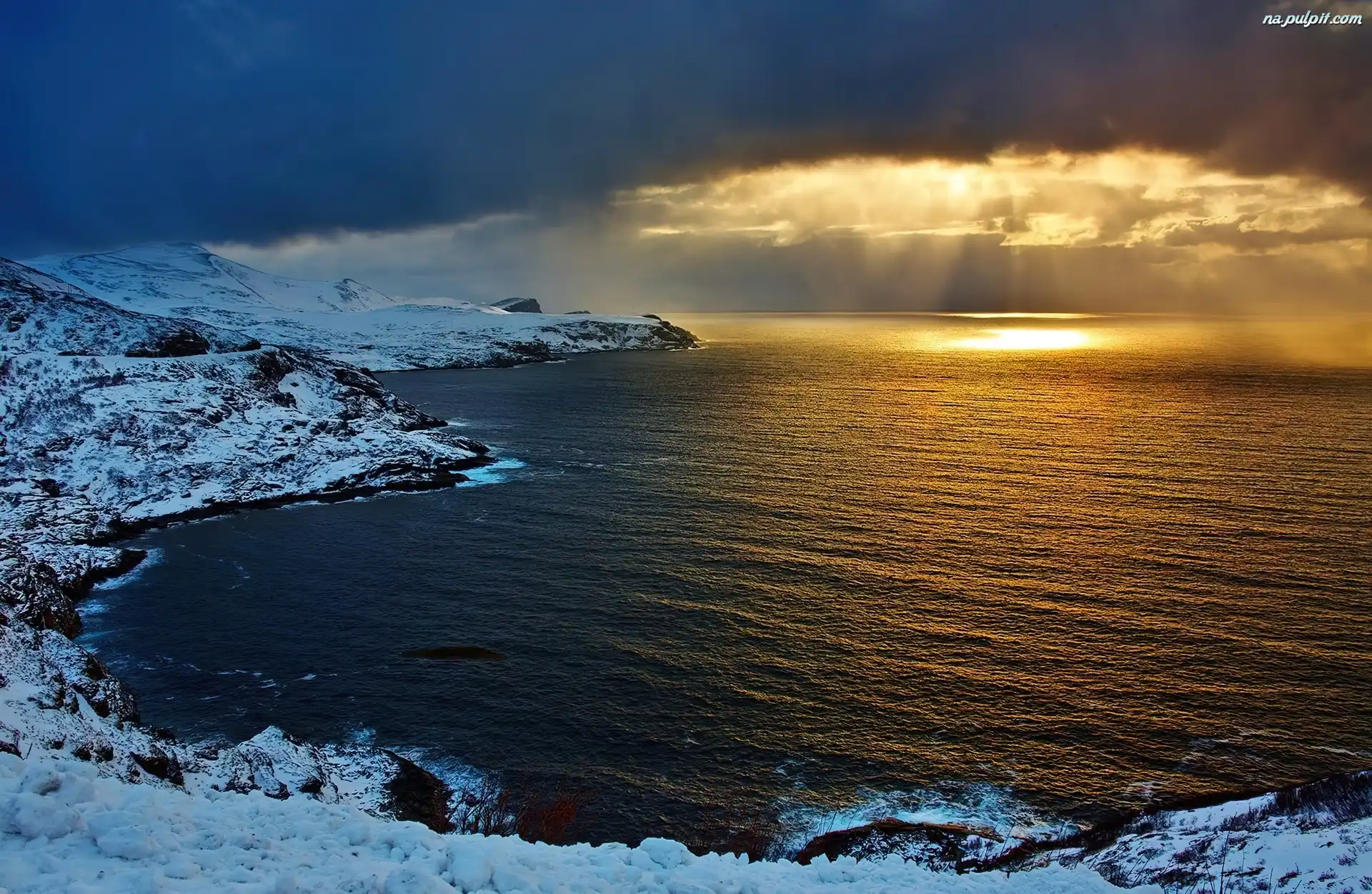 Śnieg, Słońca, Zachód, Morze Na Pulpit