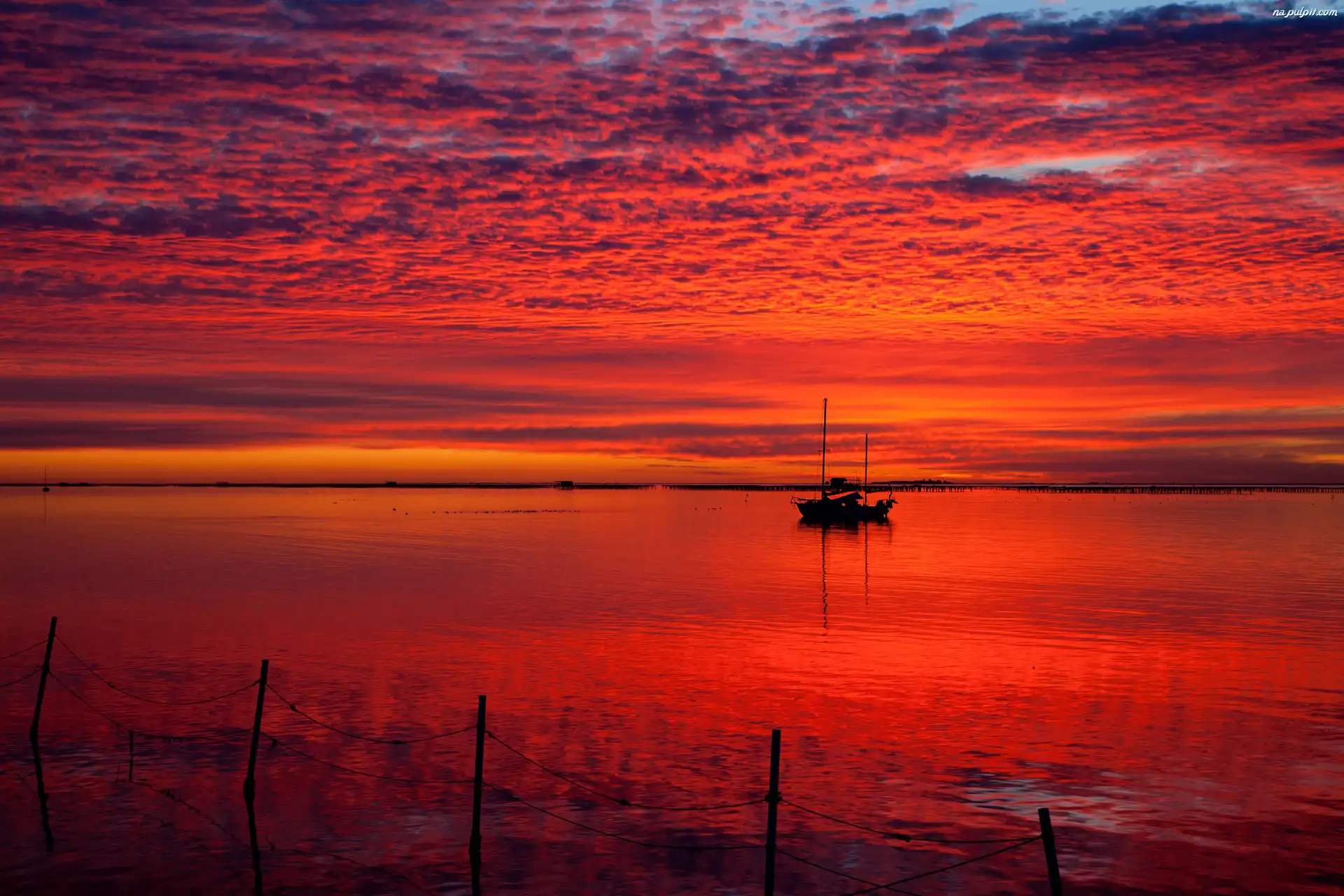 Łodzie, Słońca, Zachód, Jezioro Na Pulpit