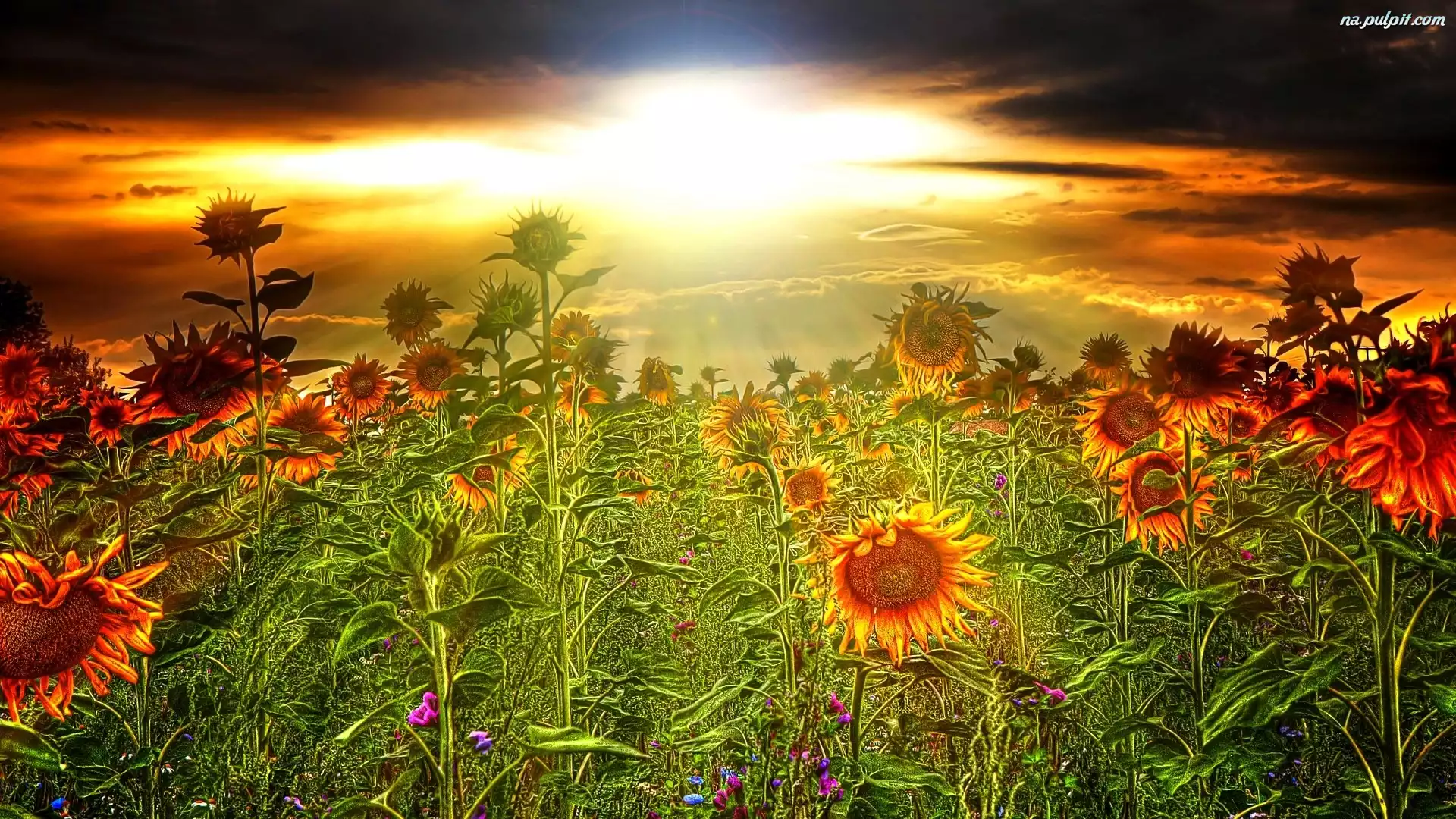 Słoneczniki, Zachód, Słońca Na Pulpit