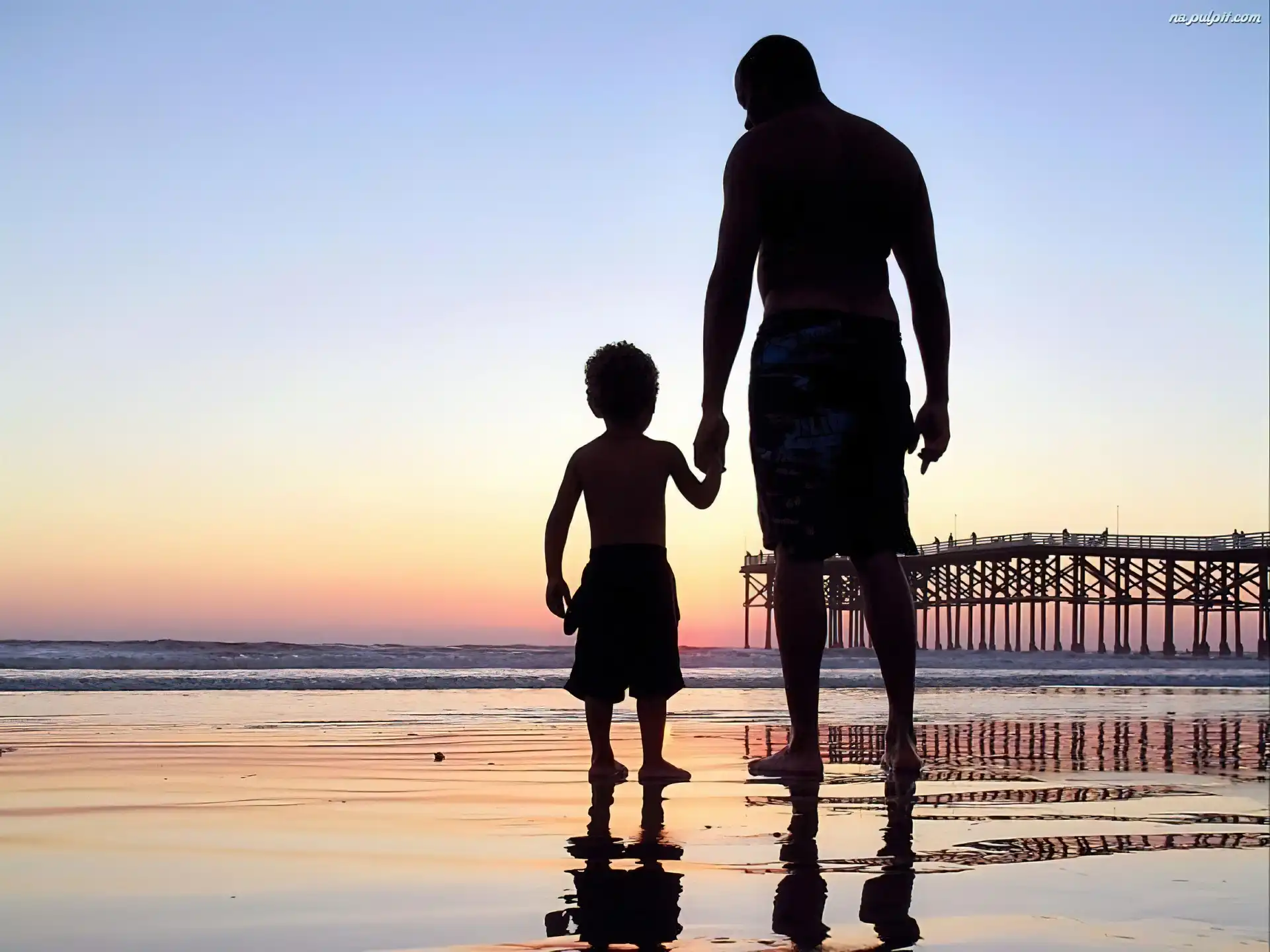 Zachód Słońca, Ojciec, Syn, Morze Na Pulpit