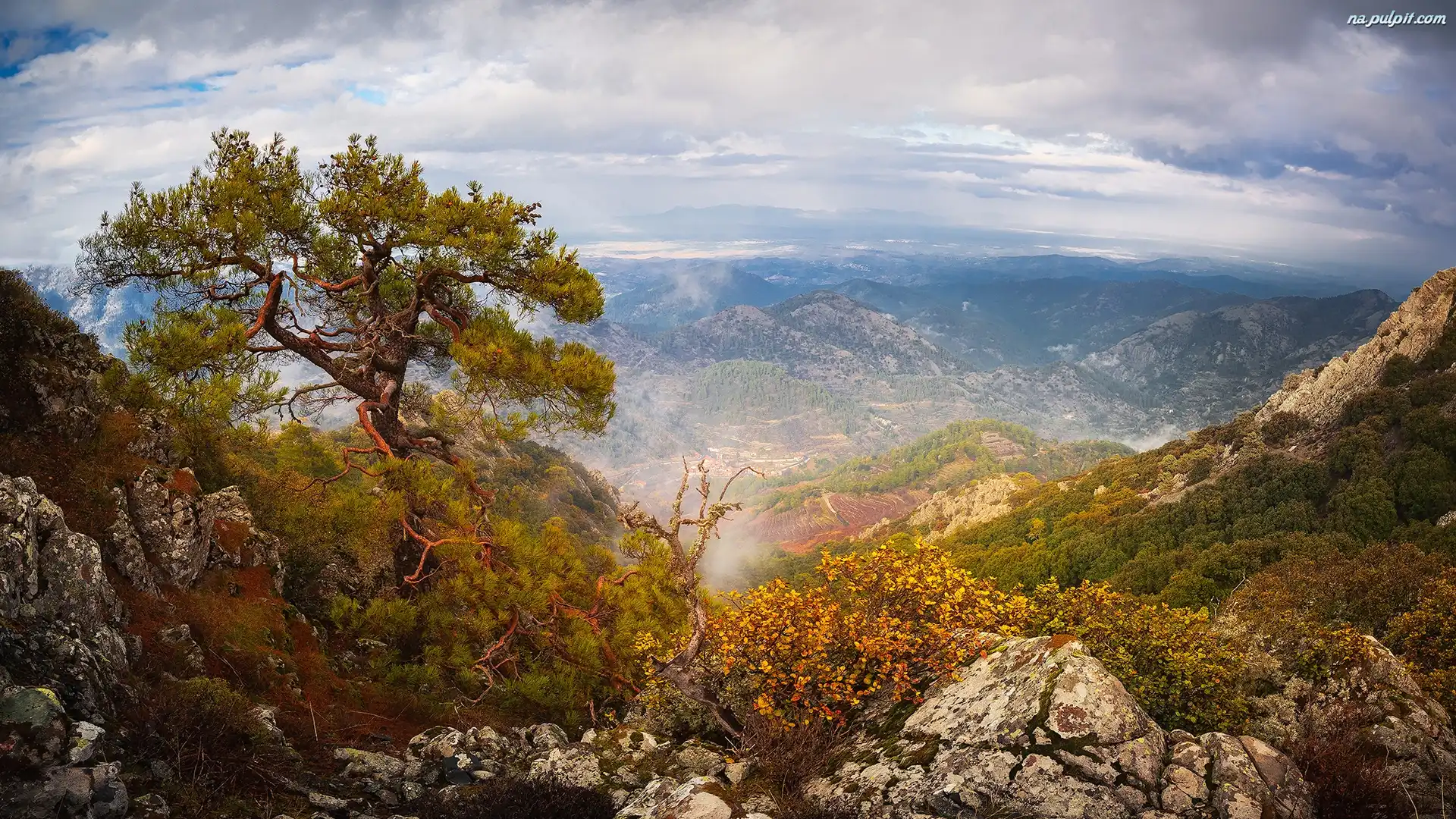 Troodos, Zachód słońca, Cypr, Kamienie, Góry, Sosna Na Pulpit