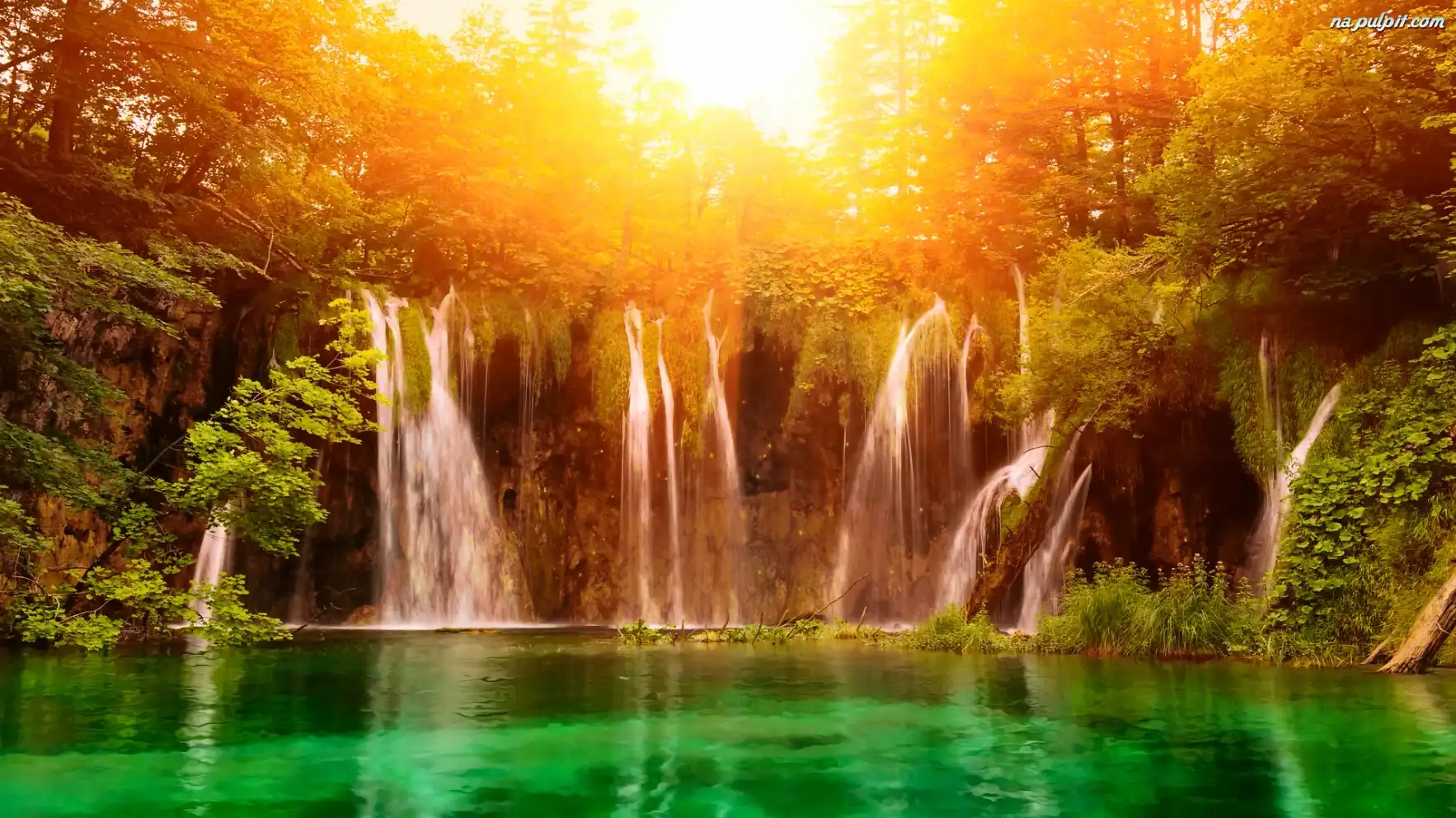 Wodospady, Zachód, Słońca Na Pulpit