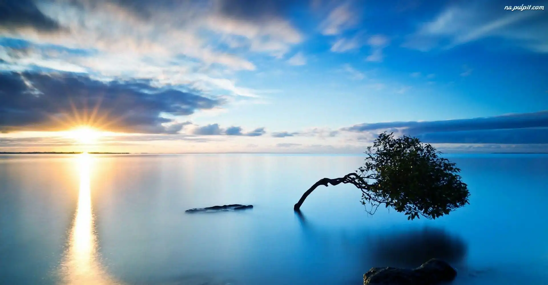 Zachód Słońca, Drzewo, Wygięte, Jezioro Na Pulpit