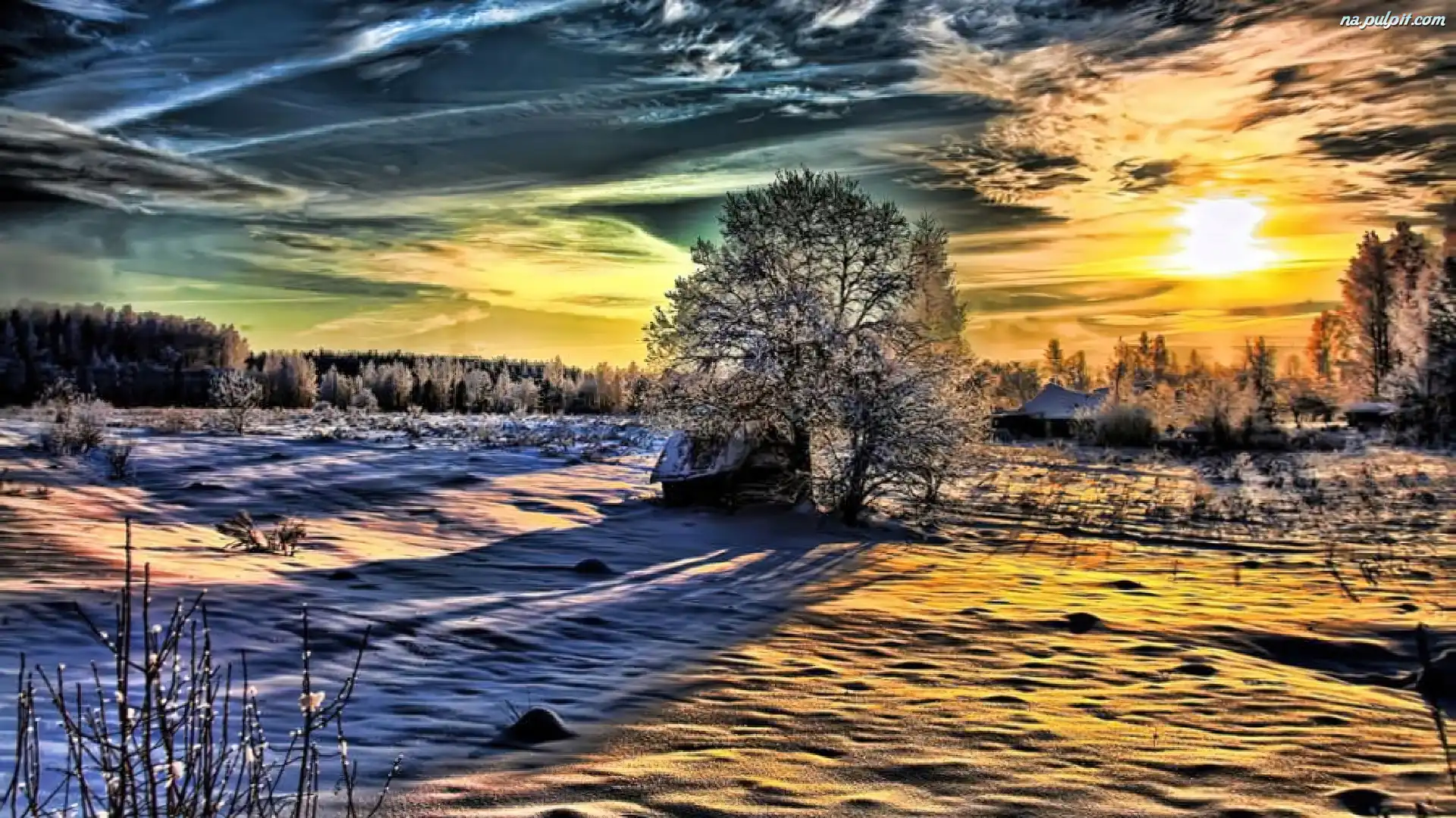 Zachód Słońca, Niebo, Kolorowe, Zima, Chmury Na Pulpit