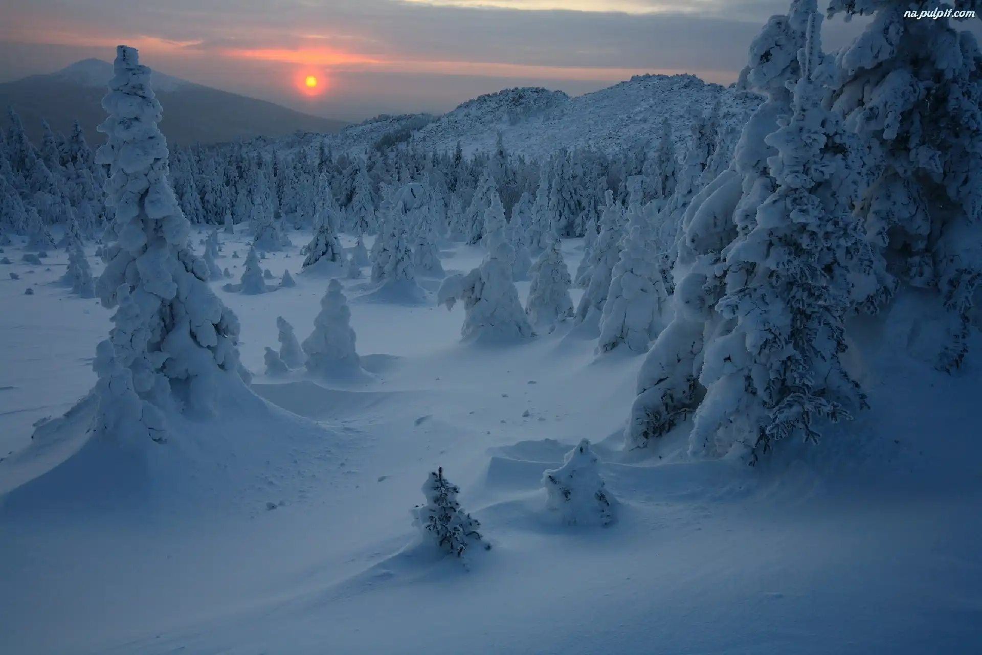 Zachód słońca, Zima, Góry Na Pulpit