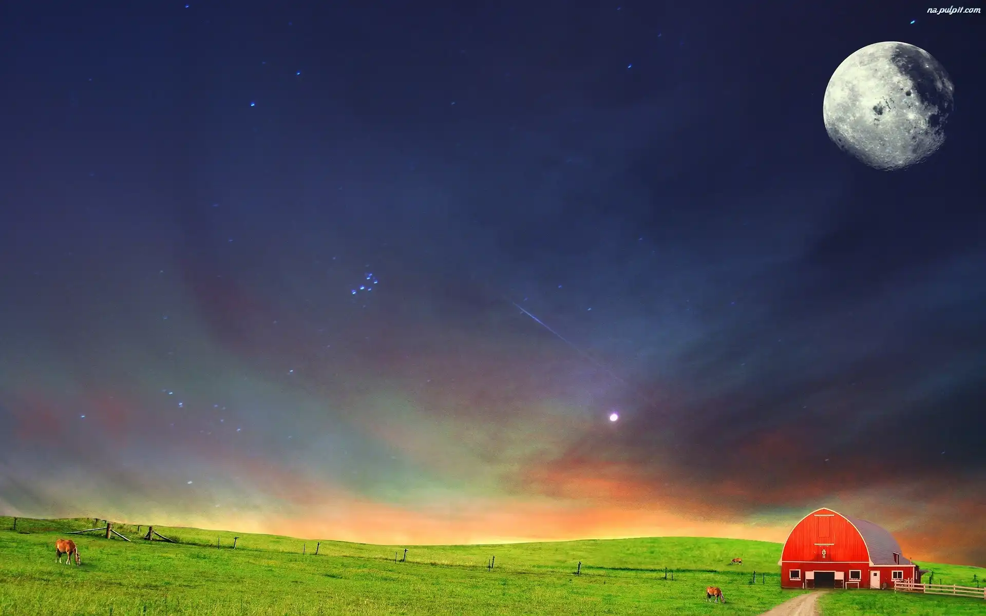 Zagroda, Stajnia, Czerwona, Konie Na Pulpit