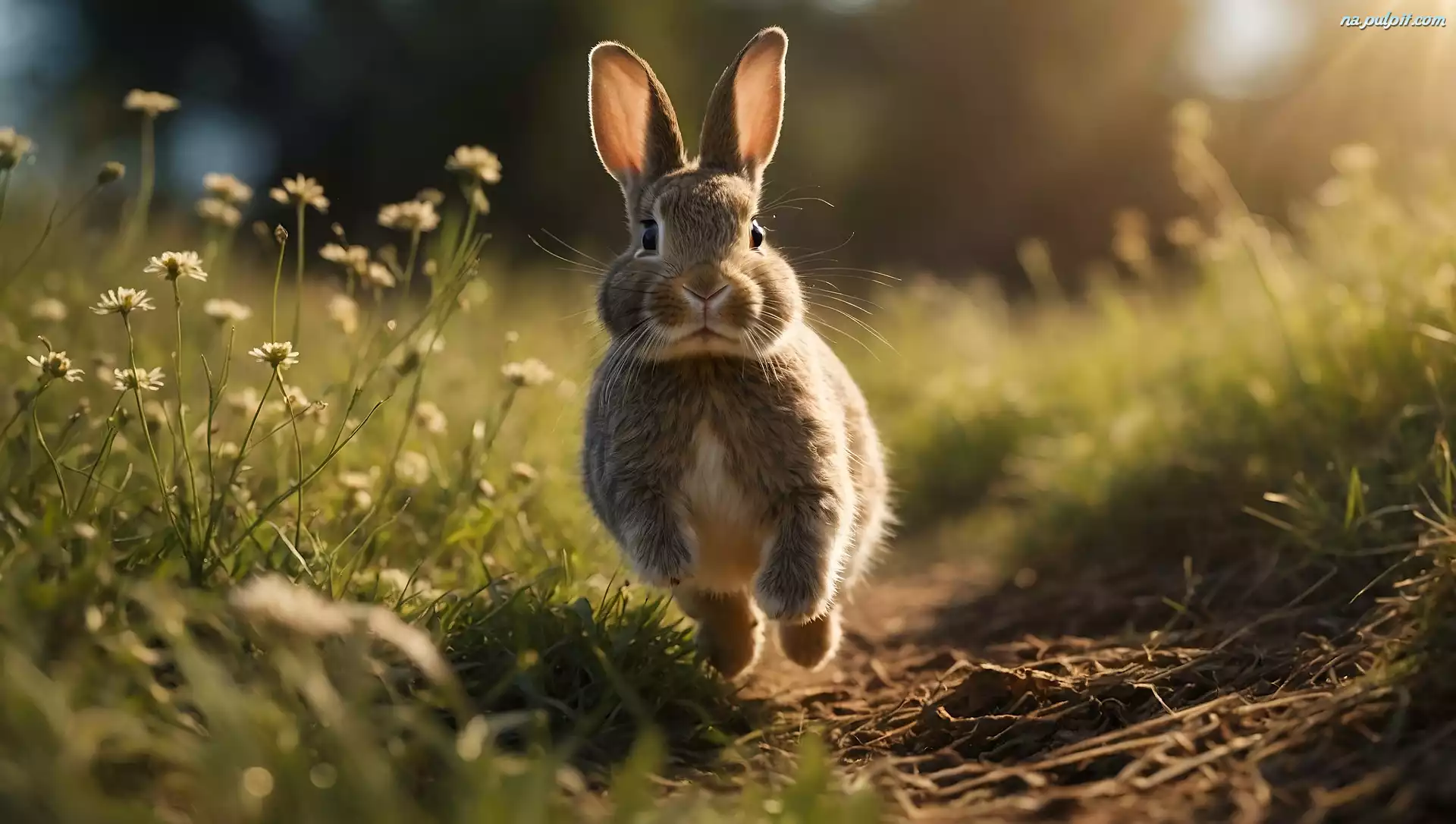 Skok, Zając, Wiosna, Droga, Trawa Na Pulpit
