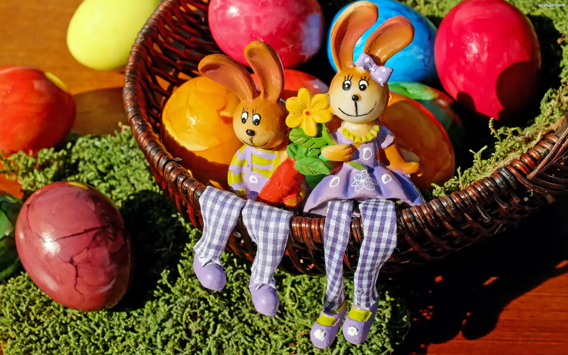 ZajÄ…czki, Koszyk, Wielkanoc, Kolorowe, Dekoracyjne, Pisanki