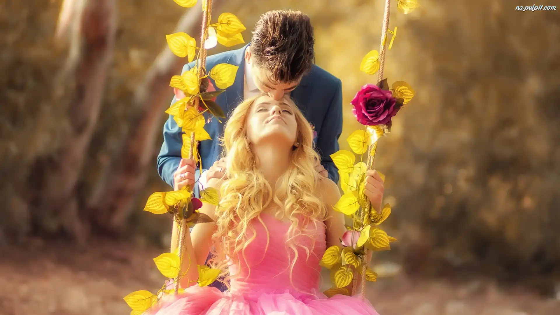 Huśtawka, Zakochani, Kobieta, Liście, Róża, Mężczyzna, Para, Miłość Na Pulpit