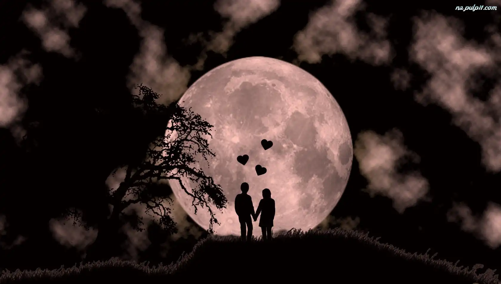 Zakochani, Księżyc, Noc, Para Na Pulpit