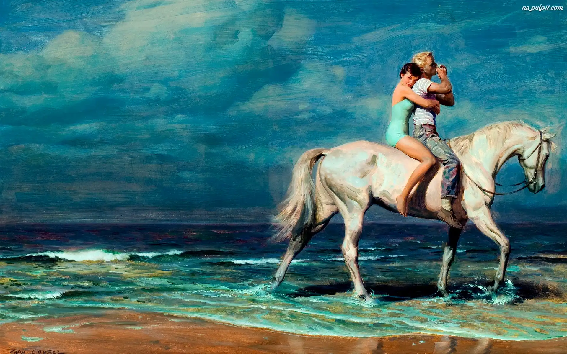 Zakochani, Morze, Obraz, Koń Na Pulpit