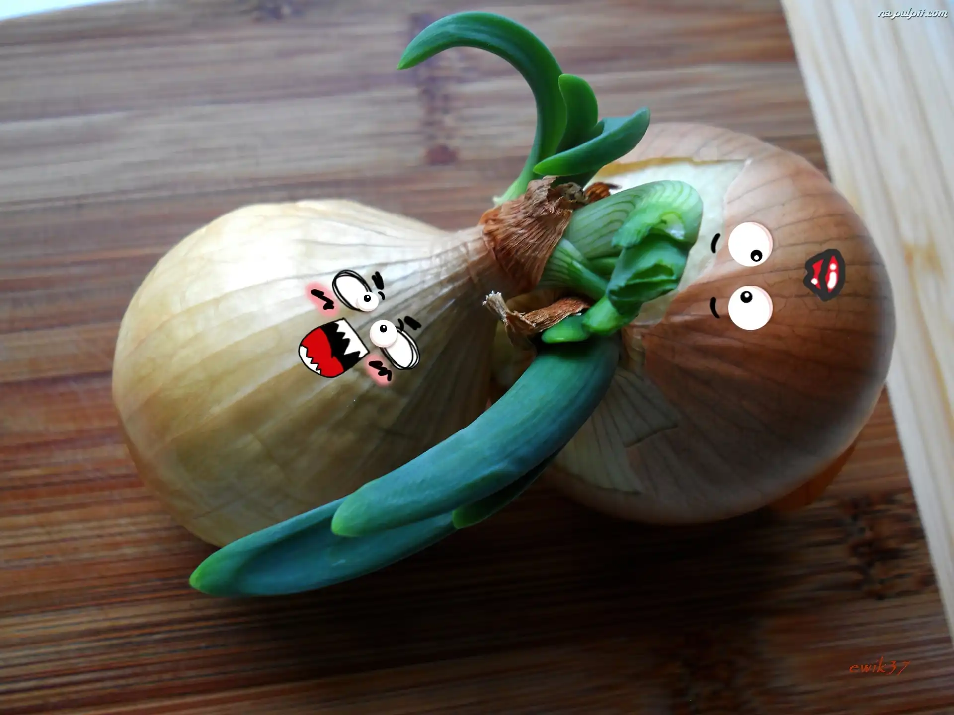 Zakręcone, Zabawne, Miny, Zielonym, Cebulki, Szczypiorem Na Pulpit
