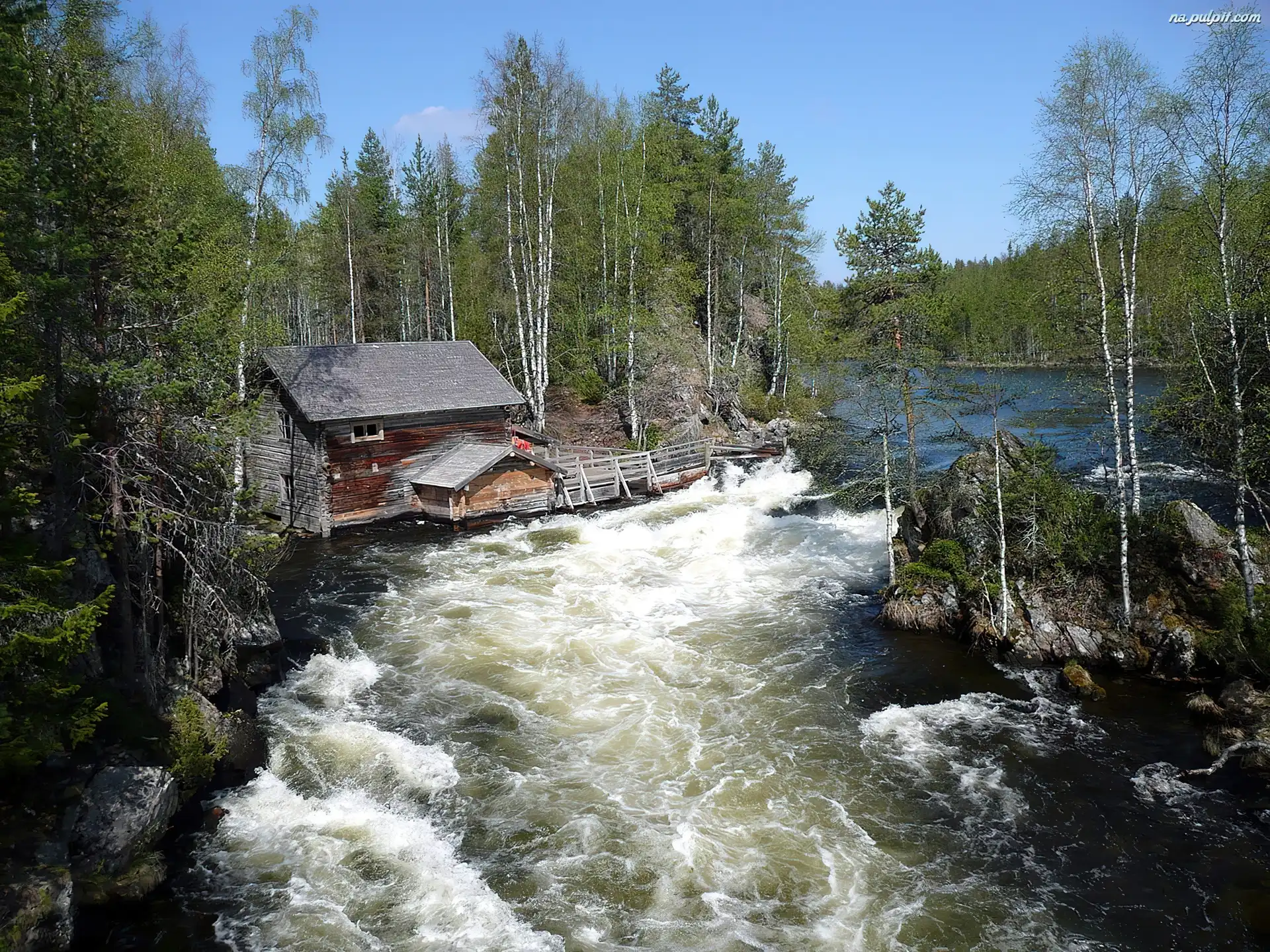 Zalesione, Oulanka, Finlandia, Brzegi, Rzeka, Domek
