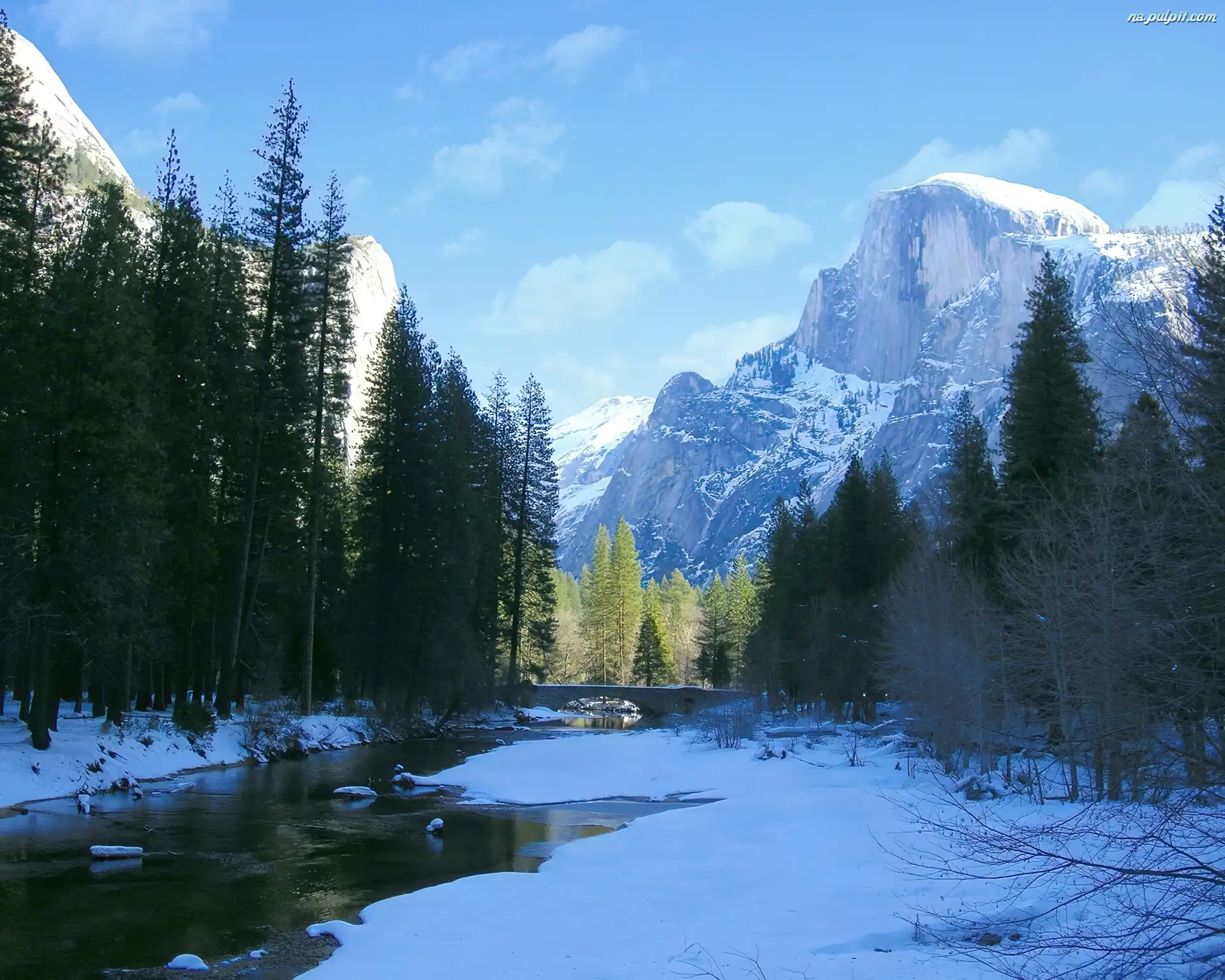 Zalesione, Zima, Yosemite, Brzegi, Rzeka, Góry Na Pulpit
