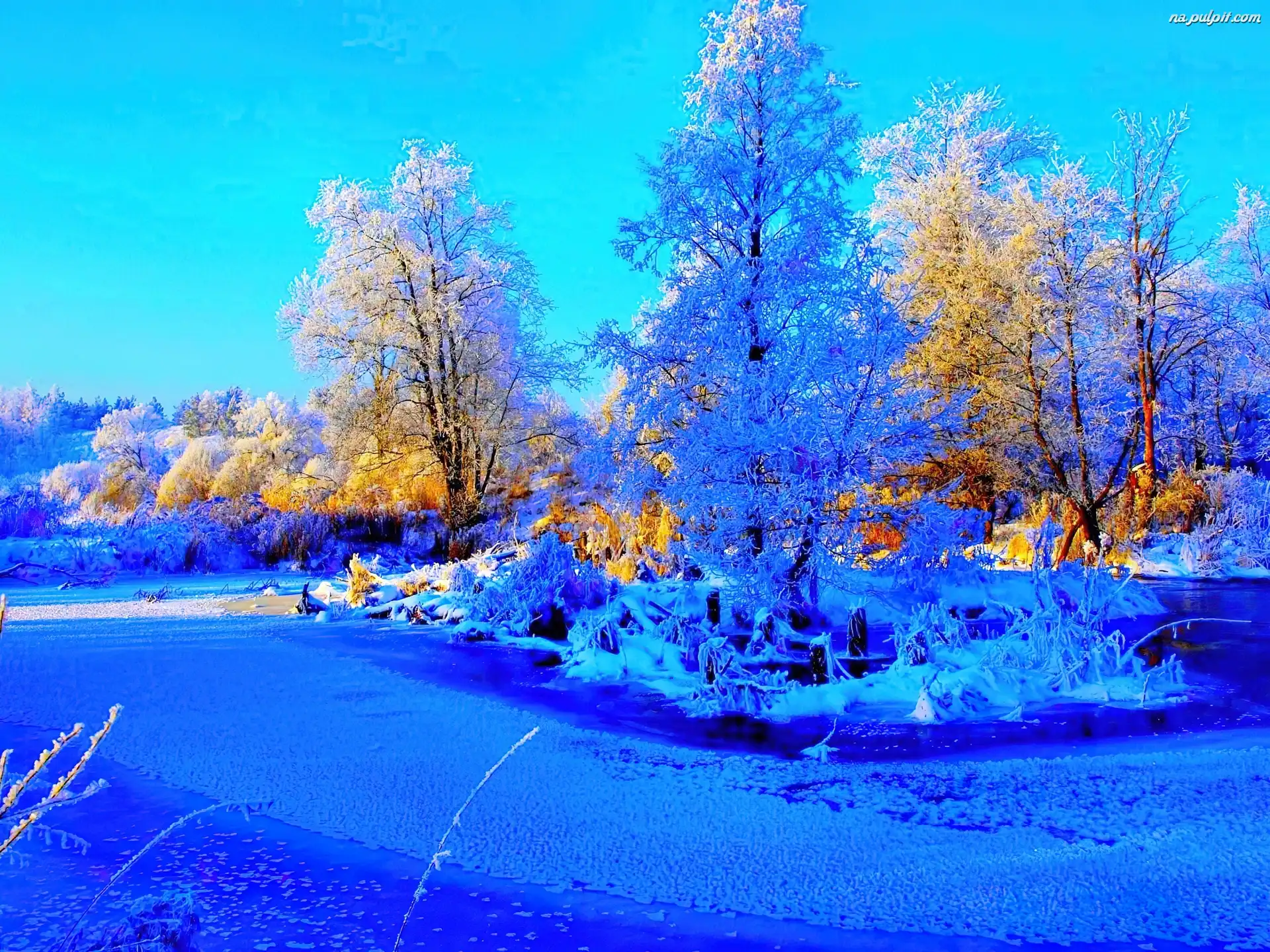 Drzewa, Zamarznięte, Jeziorko Na Pulpit