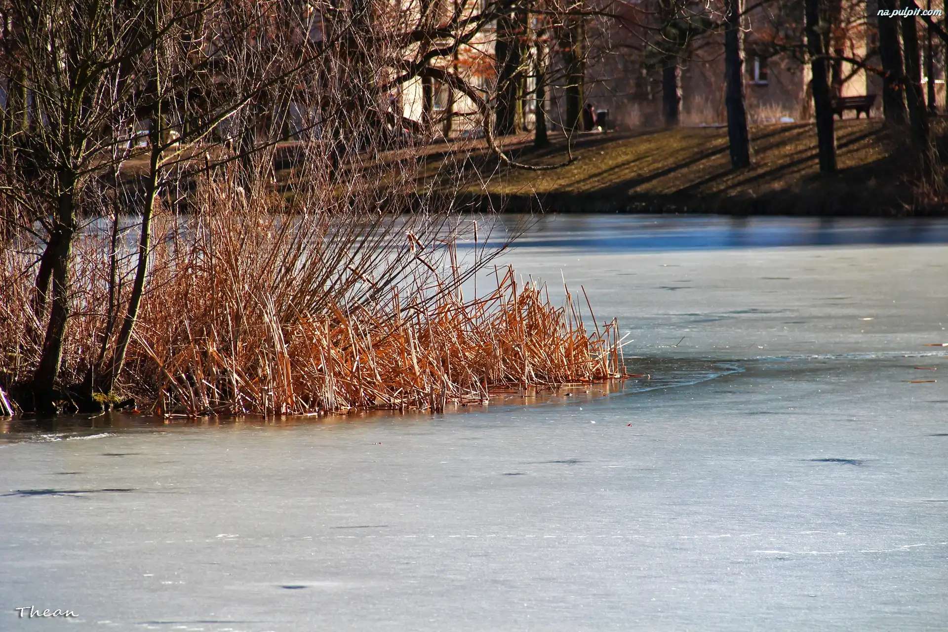 Trzcina, Zamarznięte, Jezioro Na Pulpit