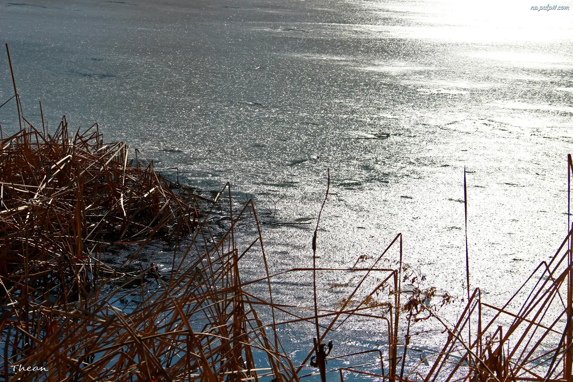 Trzcina, Zamarznięte, Jezioro Na Pulpit