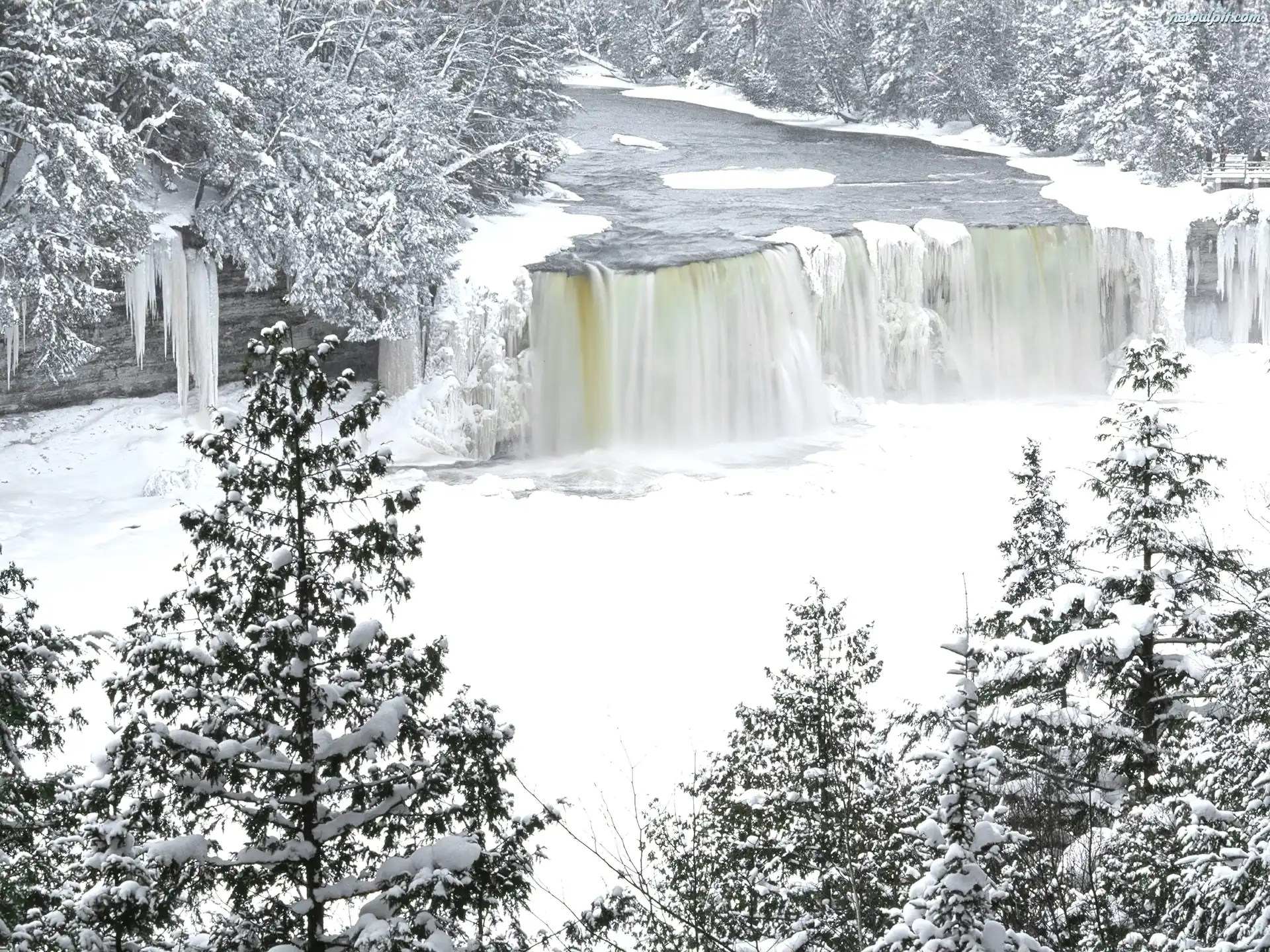 Śnieg, Zamarznięty, Wodospad Na Pulpit