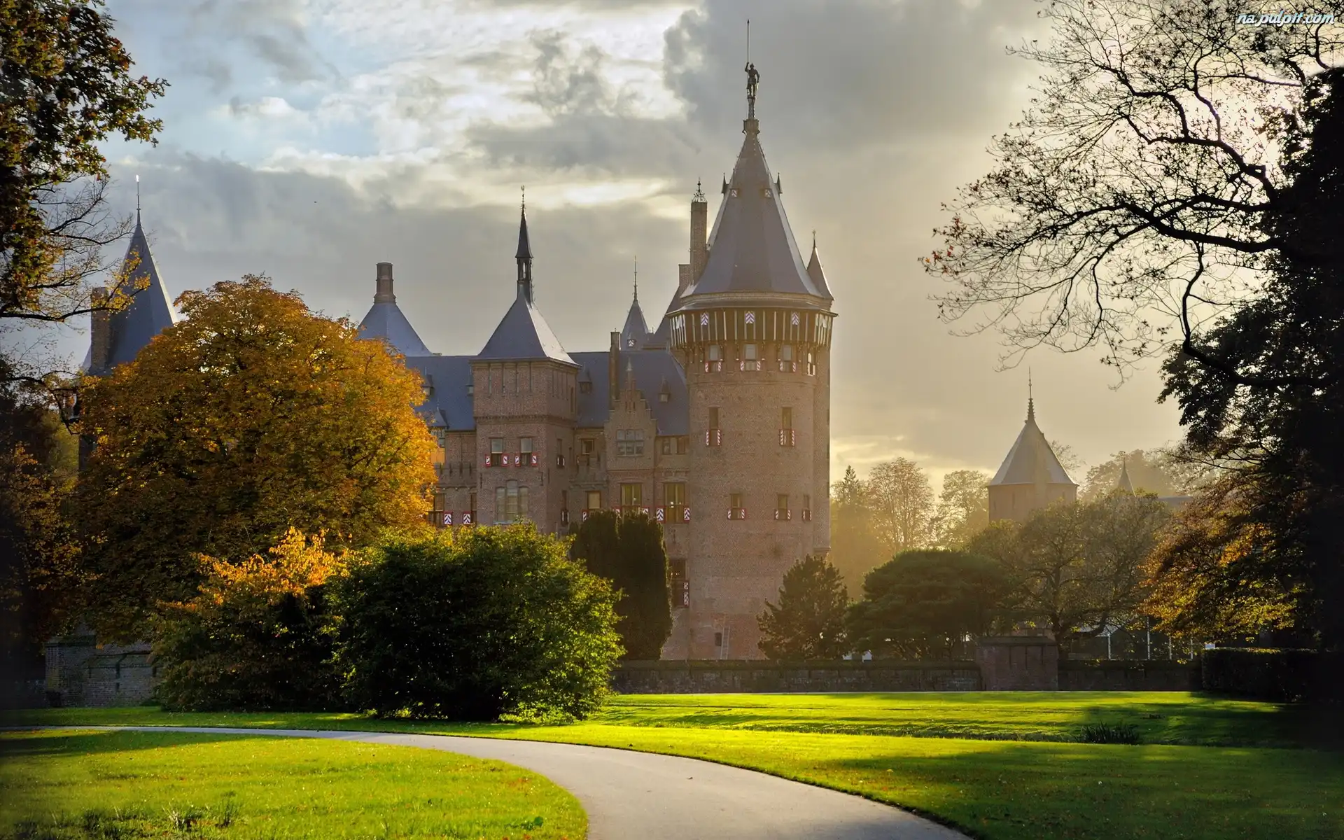 Zamek, Trawnik, Droga, Drzewa Na Pulpit