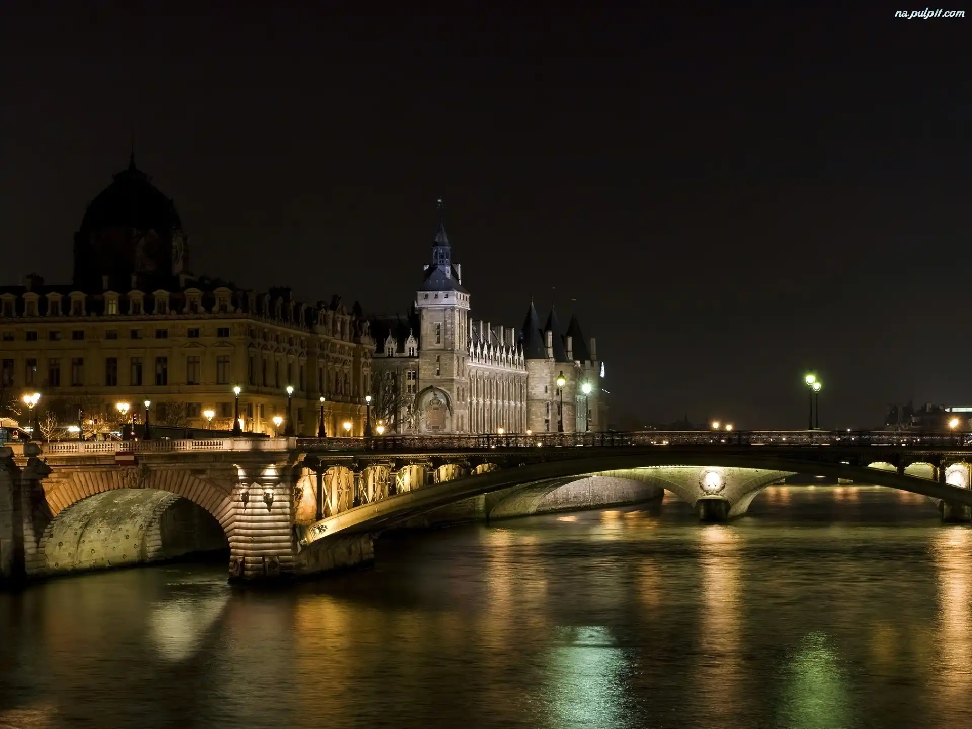 Zamek, Most, Noc, Francja, Rzeka Na Pulpit