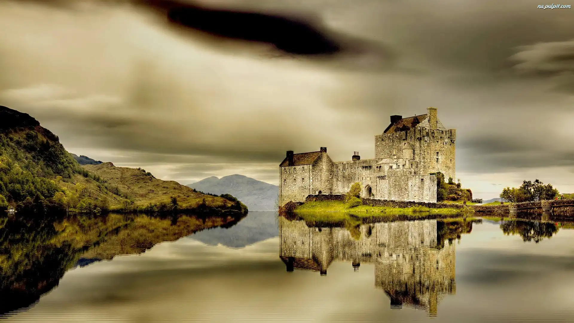 Zamek, Odbicie, Jeziora, Góry, Lustrzane Na Pulpit