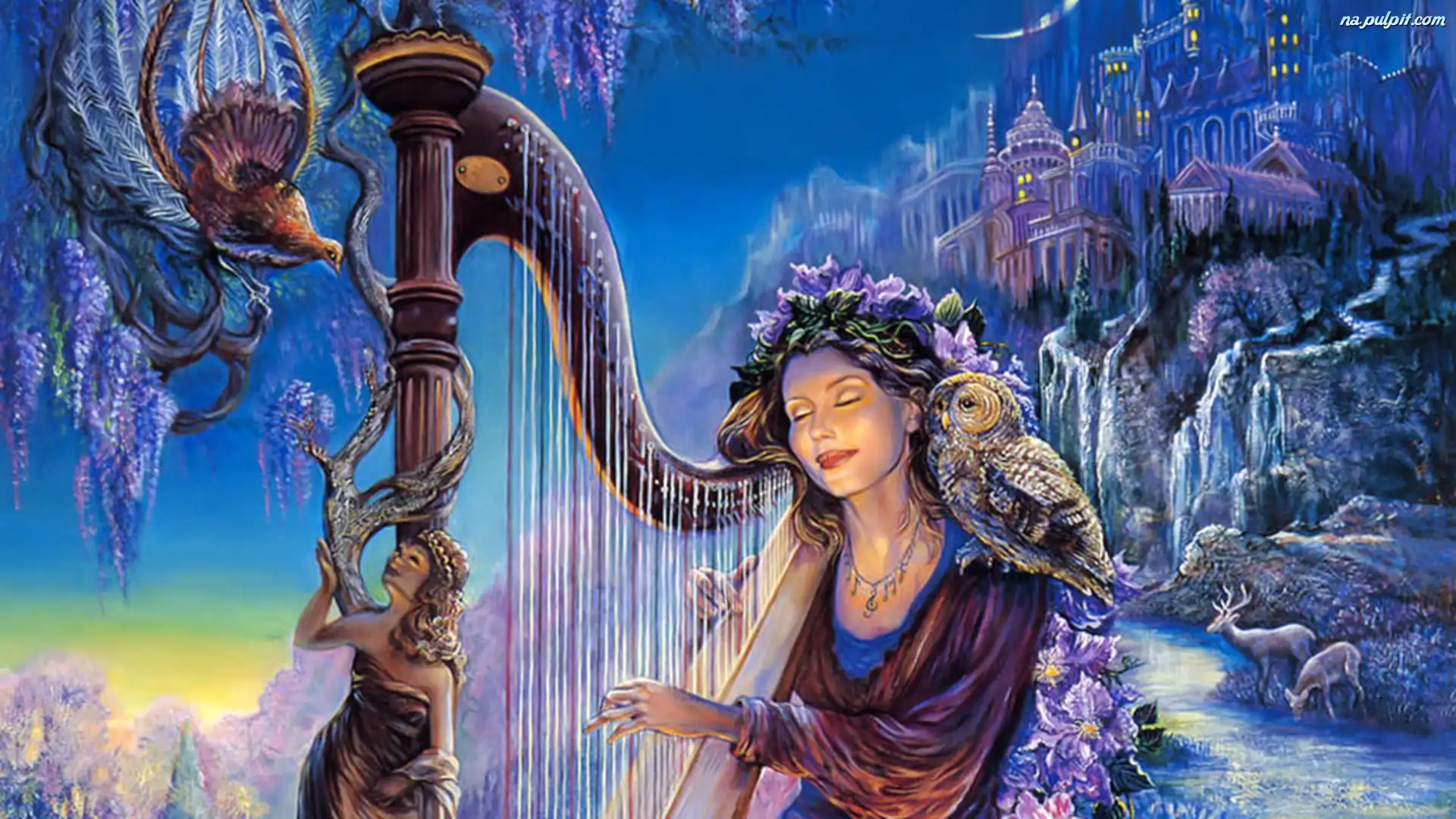 Zamek, Sowa, Harfa, Kobieta, Góry Na Pulpit