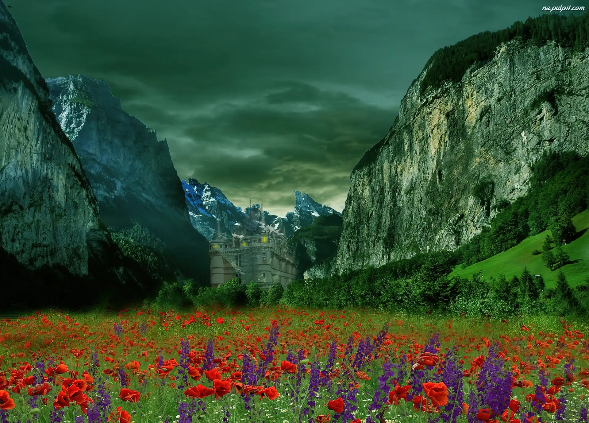 Zamek, Łąka, Skały, Maki Na Pulpit