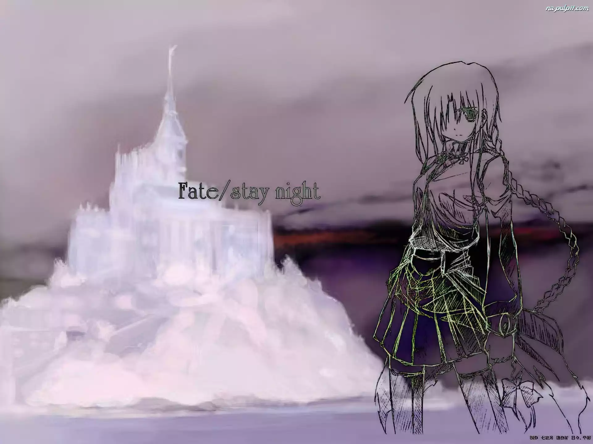 zarys, zamek, negatyw, Fate Stay Night, kobieta