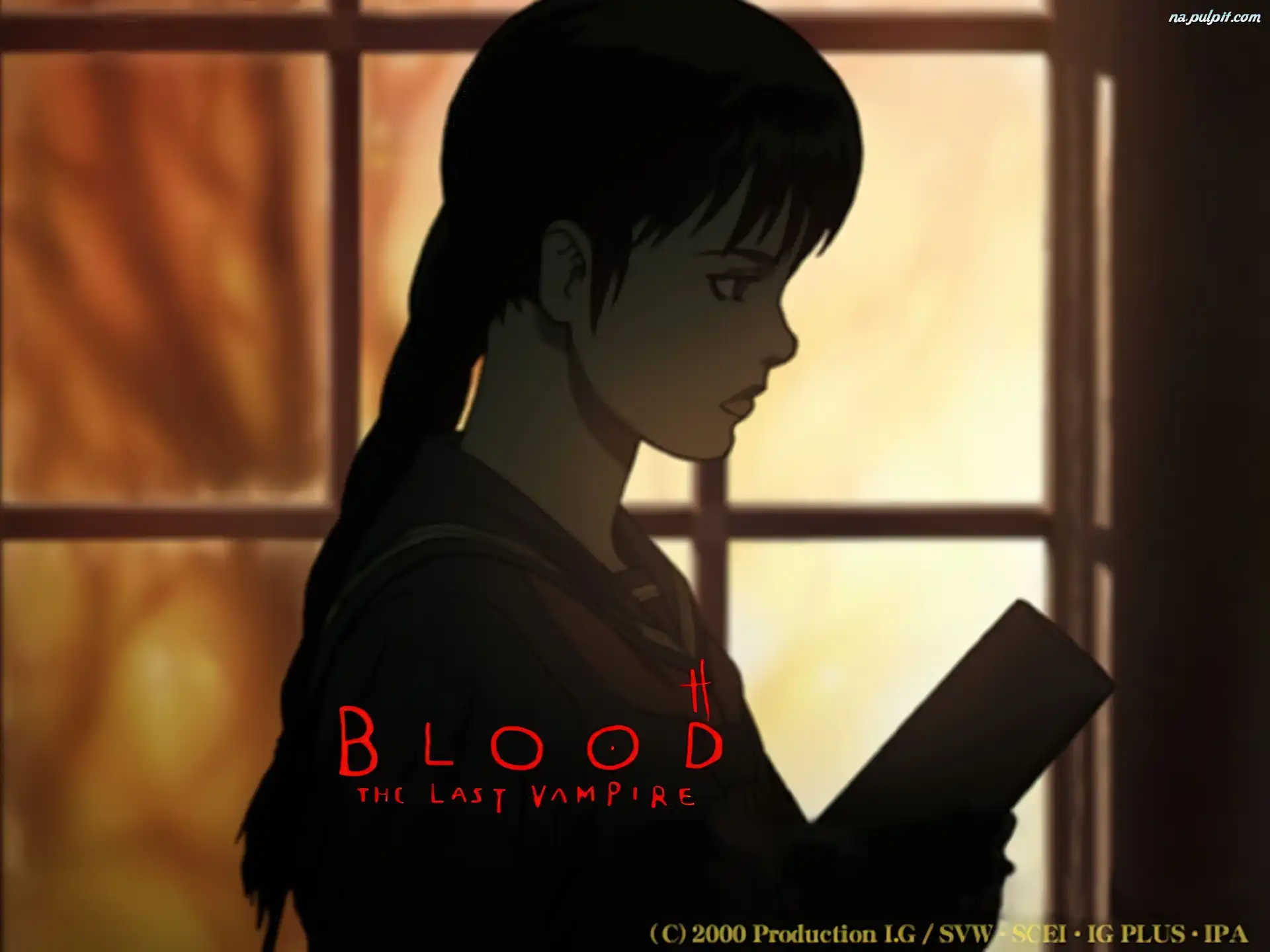 okno, zamyslenie, postać, Blood The Last Vampire, napisy