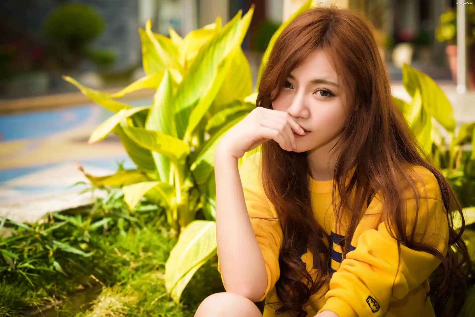 Azjatka, Zamyślona, Kobieta