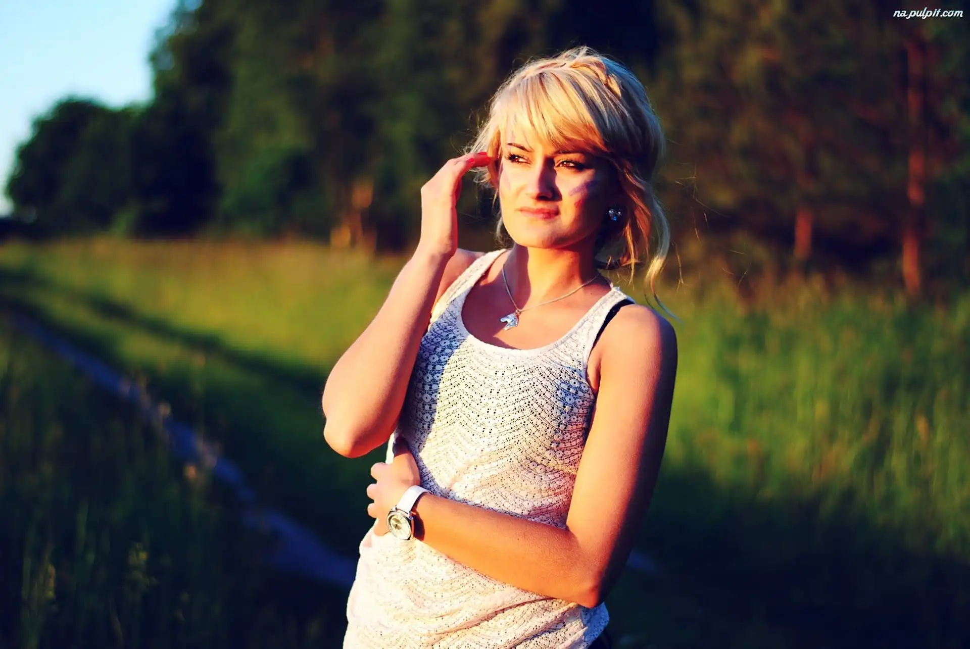 Blondynka, Zamyślona, Kobieta Na Pulpit
