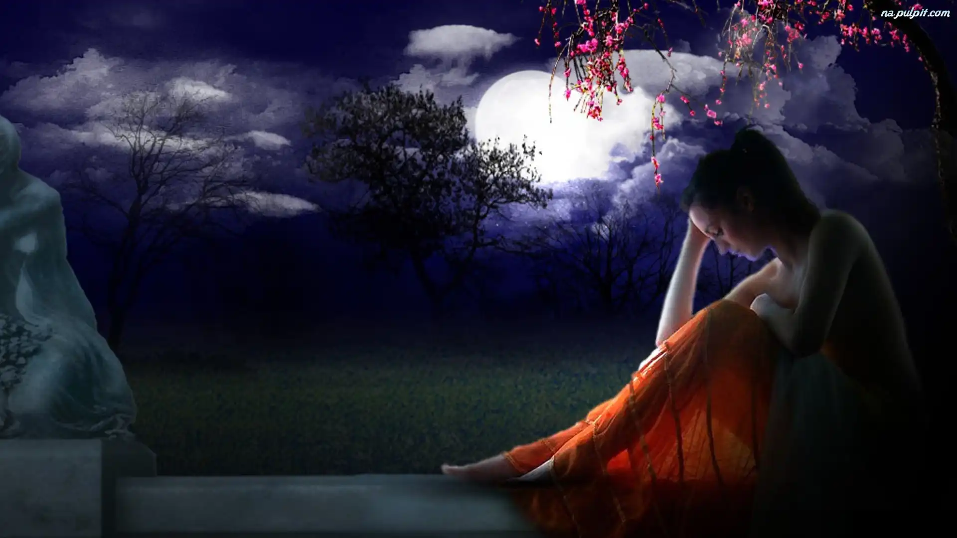 Księżyc, Zamyślona, Kobieta