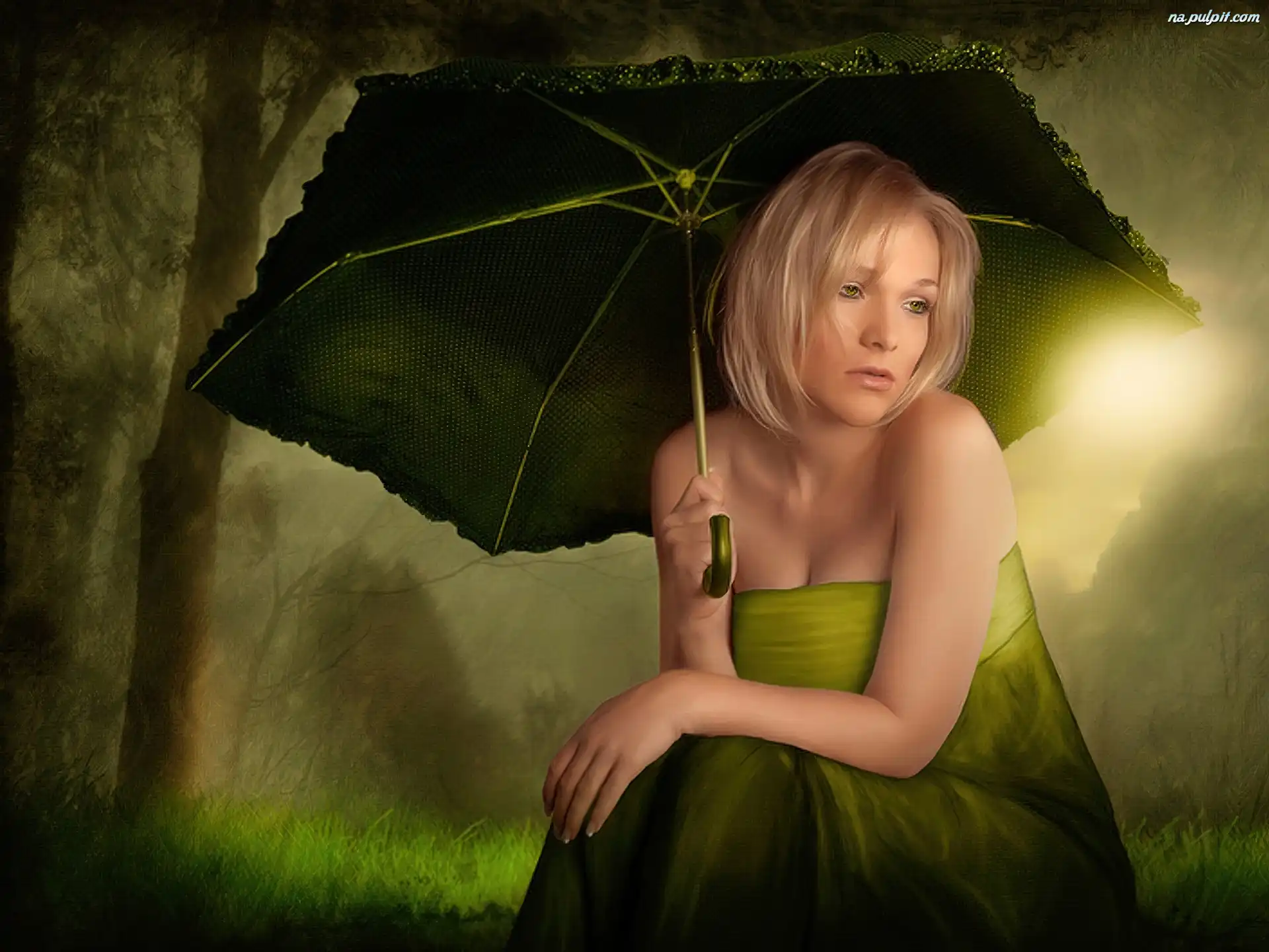 Parasol, Zamyślona, Kobieta Na Pulpit