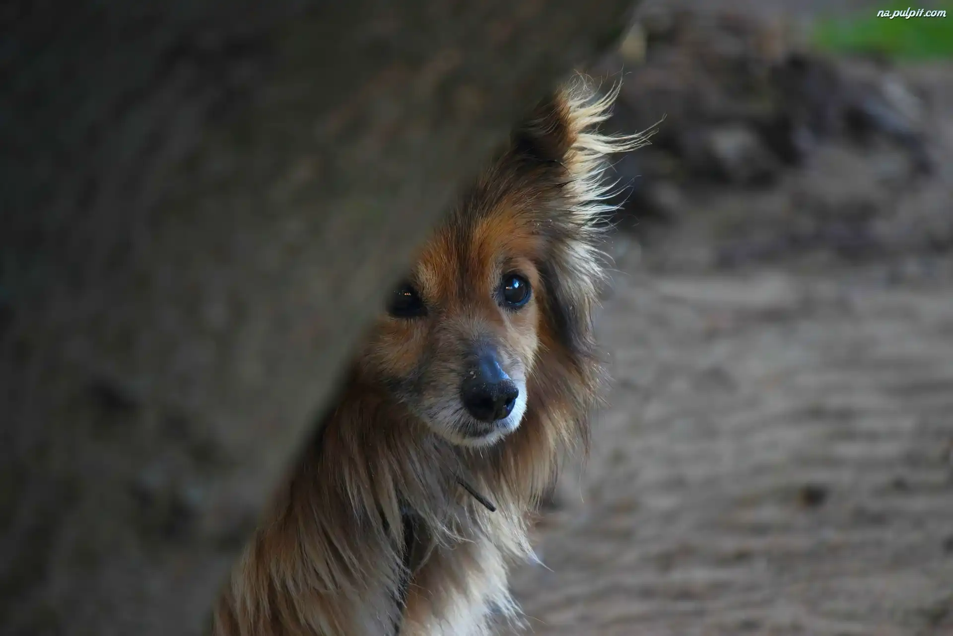 Drzewo, Zapatrzony, Pies Na Pulpit