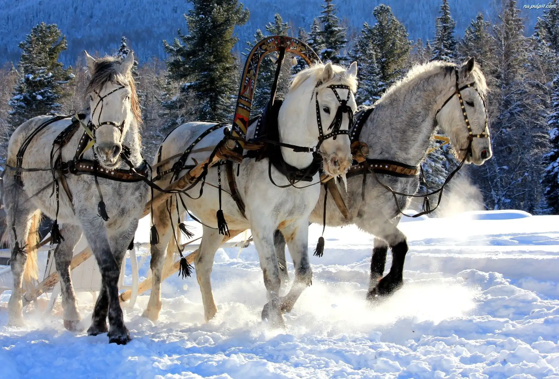 Zaprzęg, Śnieg, Zima, Konie Na Pulpit