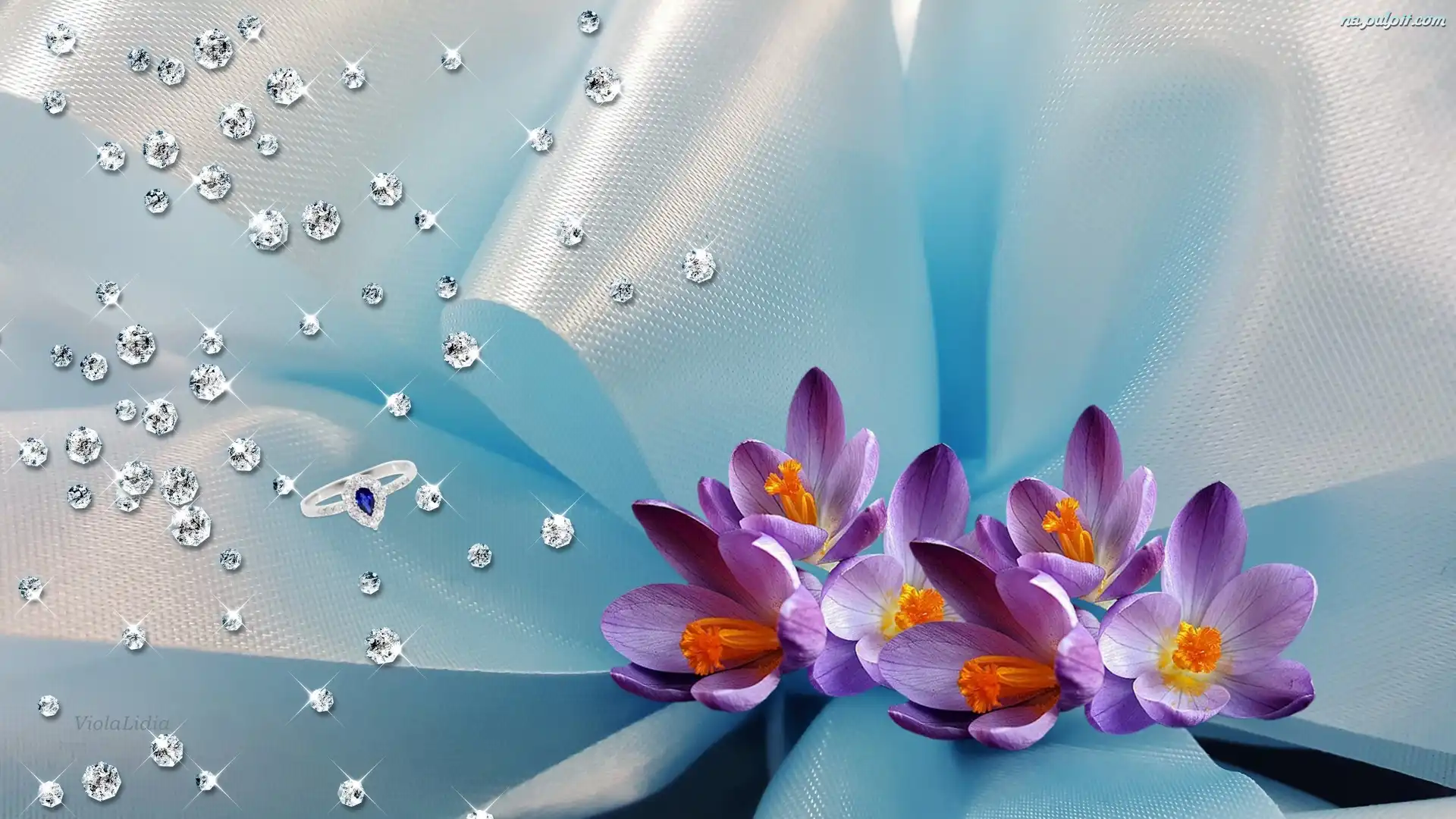 Kwiaty, Zaręczyny, Biżuteria, Krokusy, Kokarda, Pierścionek, Grafika, Diamenty Na Pulpit