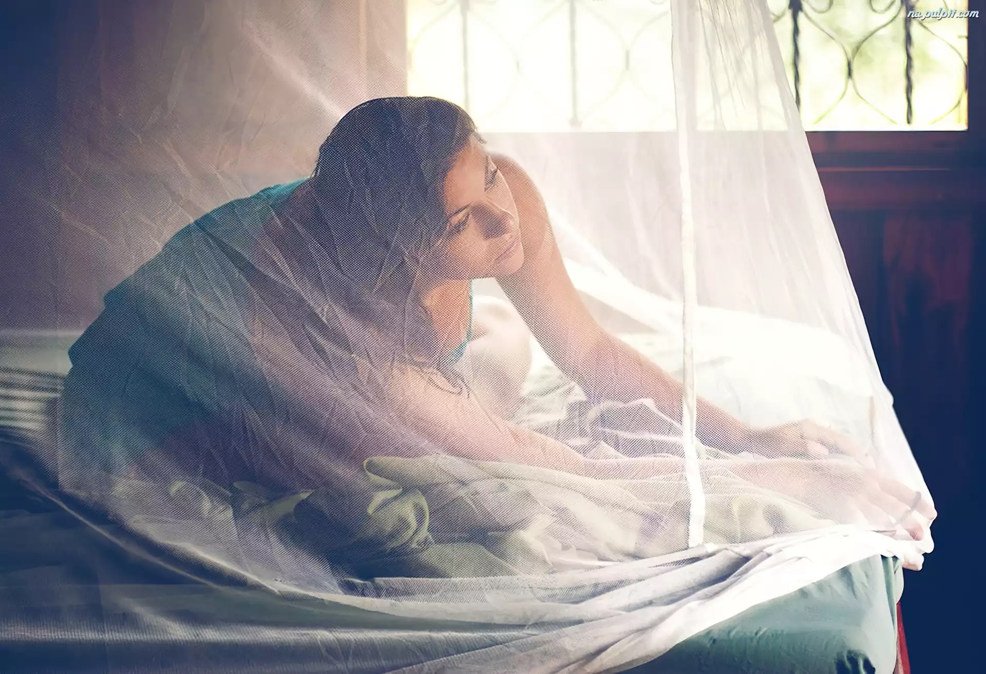 Zasłona, Brunetka, Kobieta, Łóżko Na Pulpit