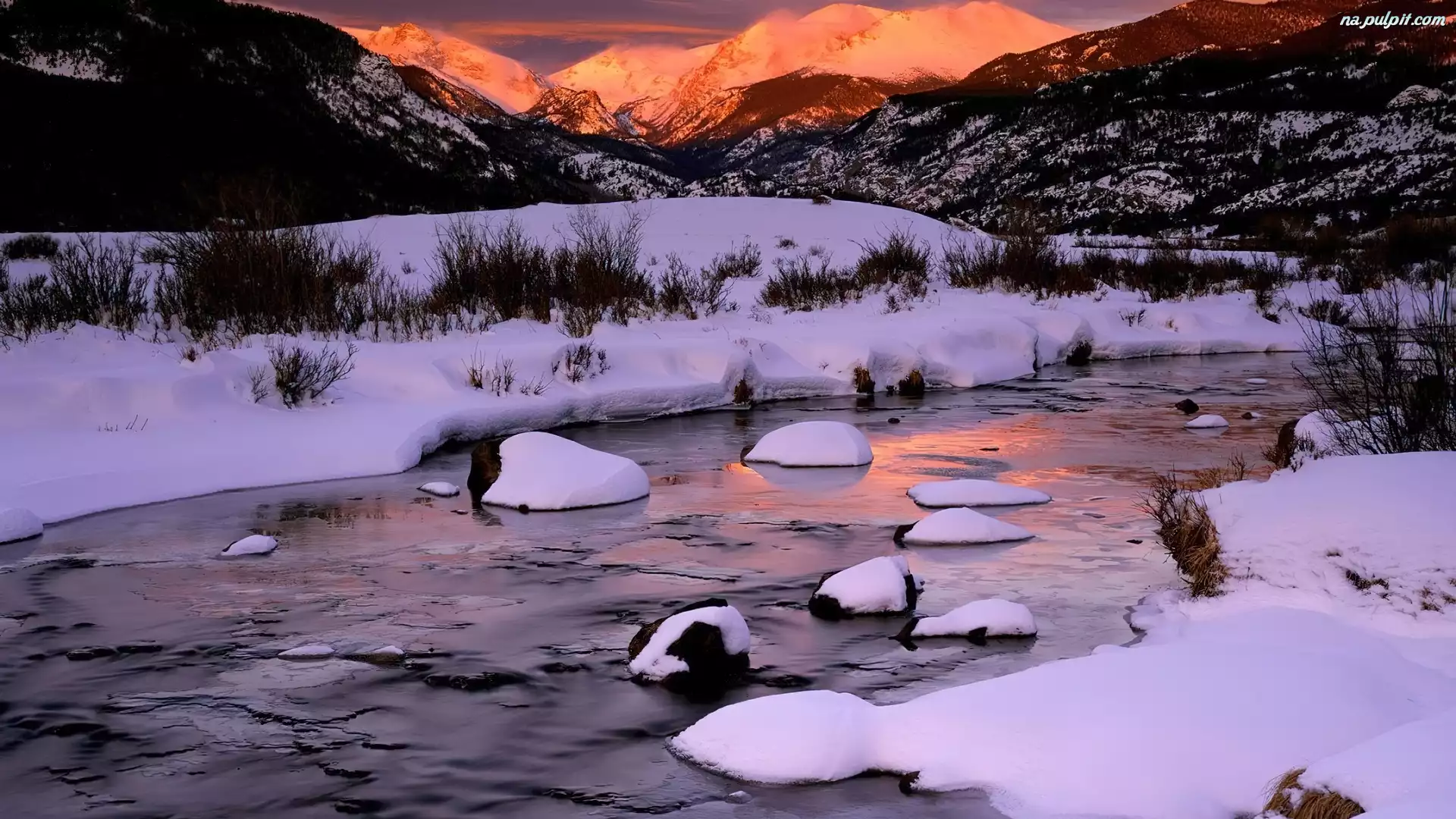 Zaspy, Rzeka, Góry, Śnieżne Na Pulpit