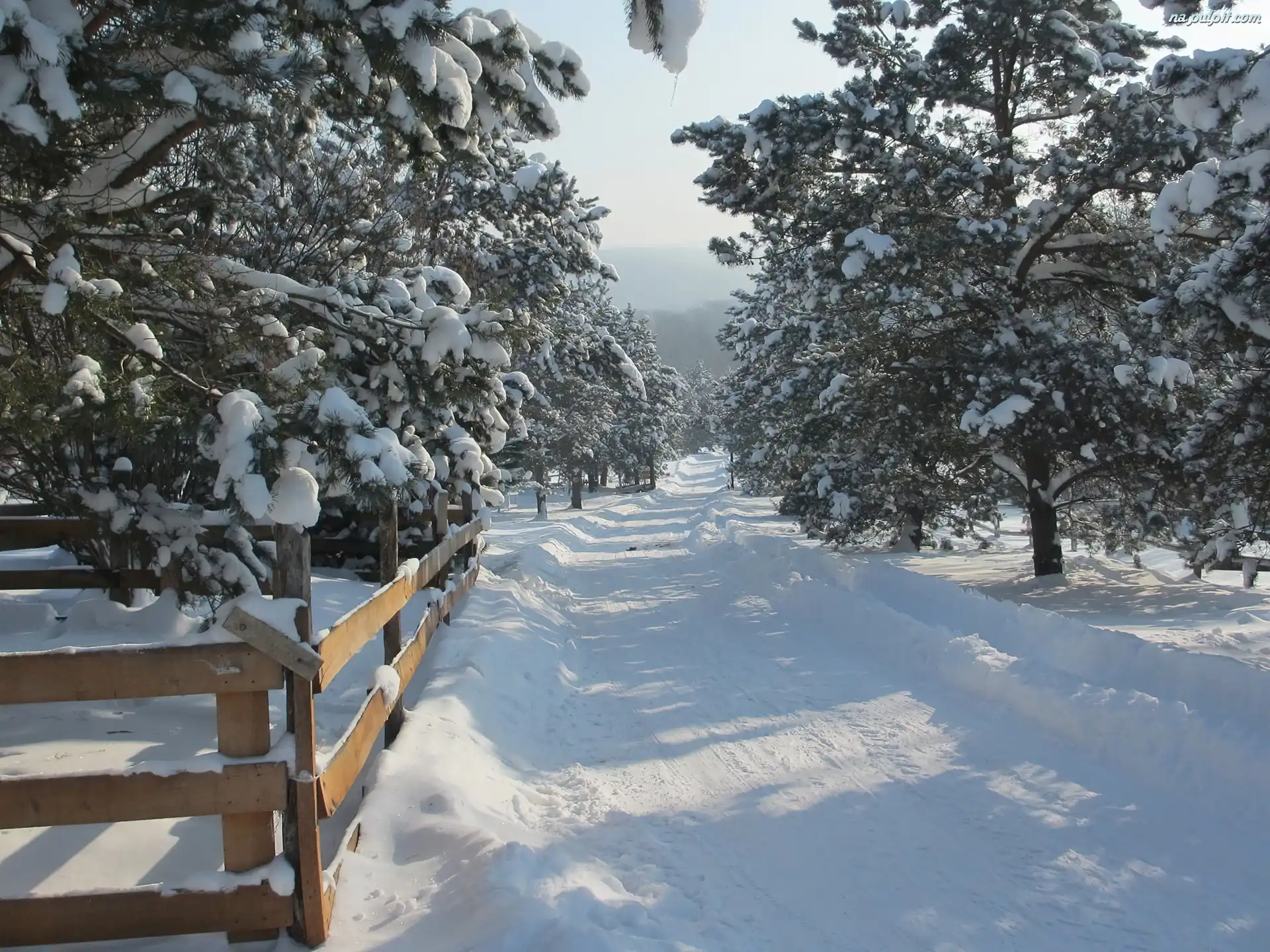 Zaspy, Ogrodzenie, Drzewa, Zima, Droga Na Pulpit
