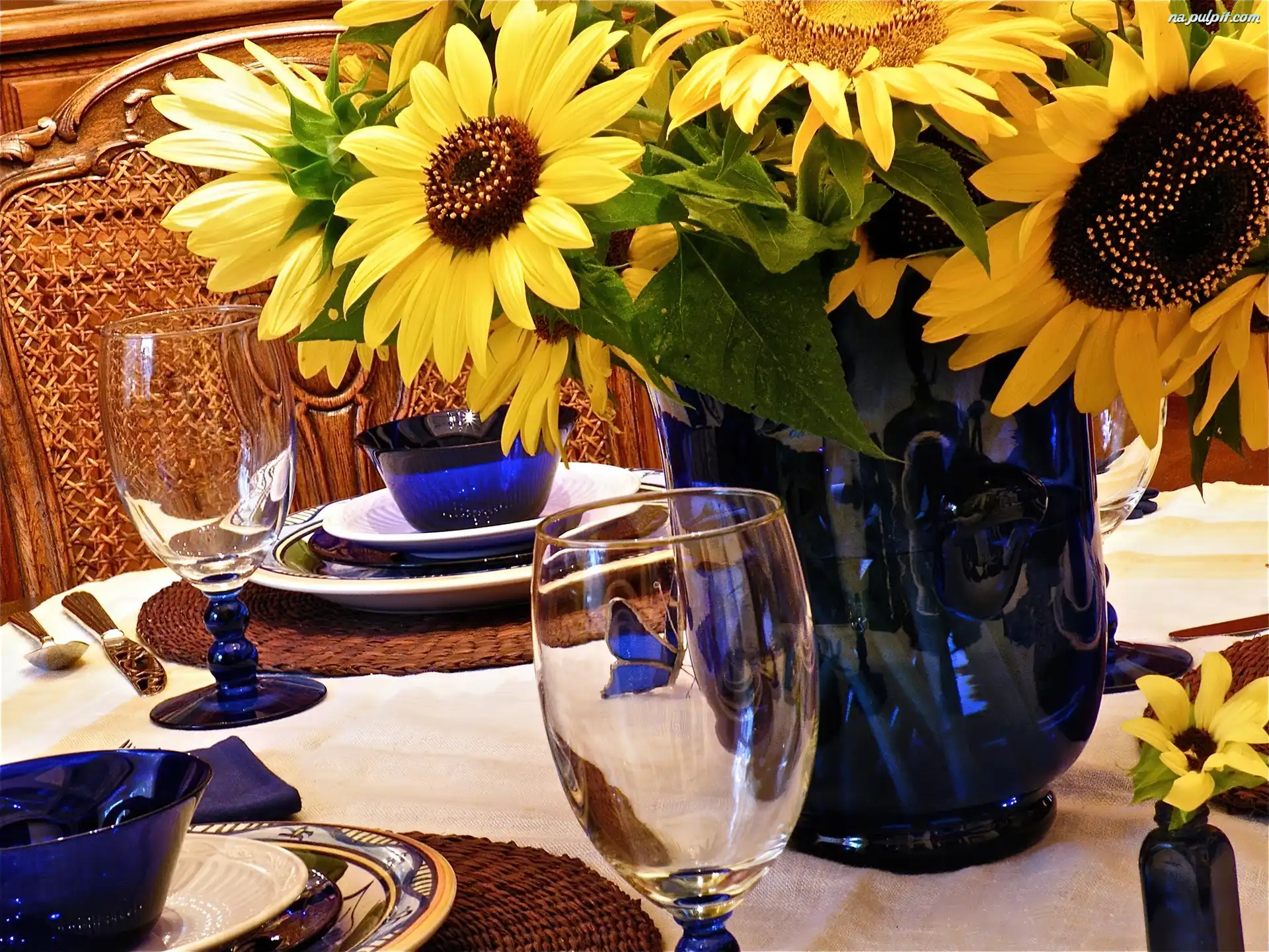 Zastawa, Słoneczników, Bukiet, Stół