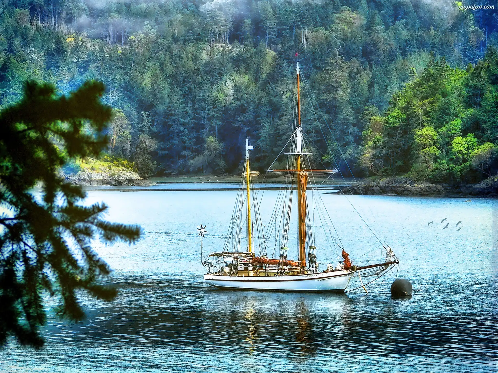 Drzewa, Zatoka, Żaglowiec Na Pulpit