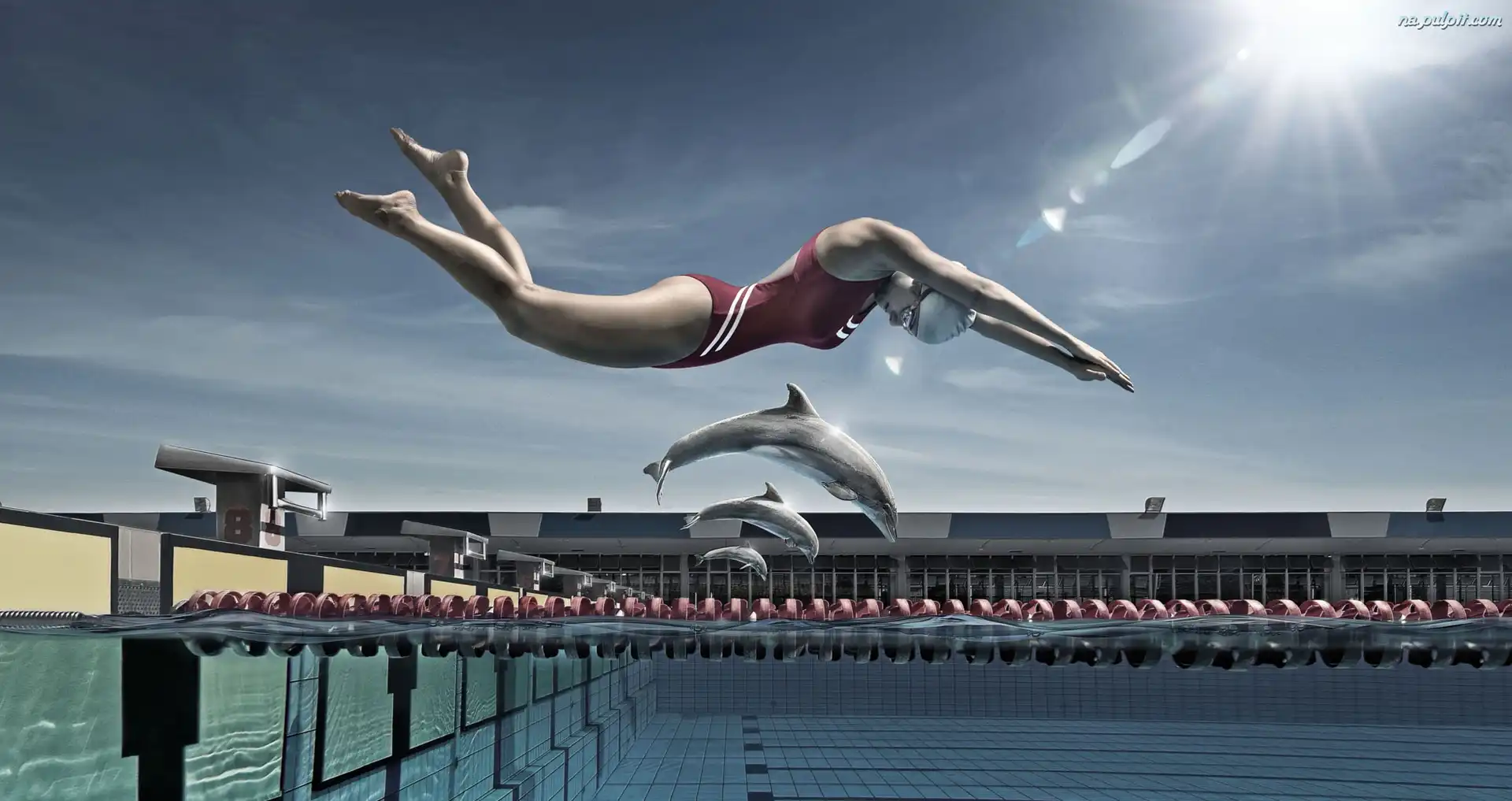 Zawody, Kobieta, Basen, Delfiny