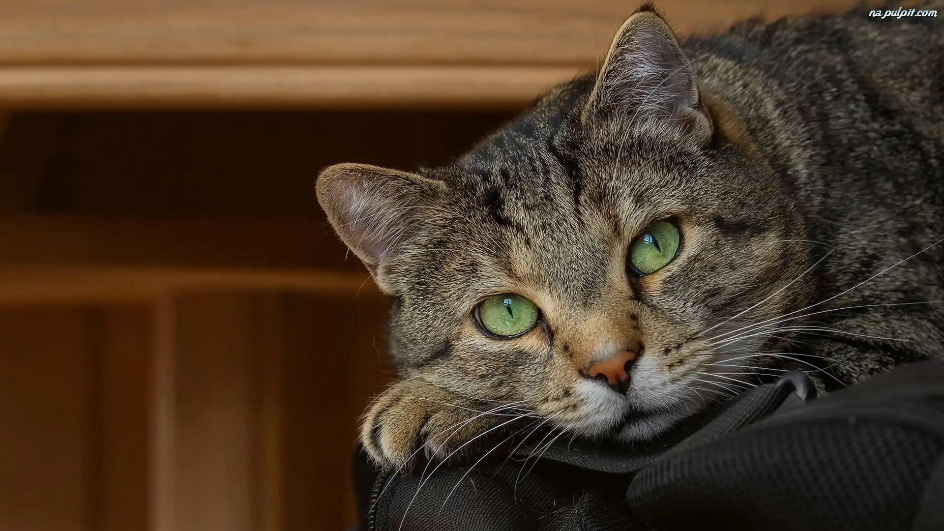 Zbliżenie, Mordka, Kot, Bury, Spojrzenie Na Pulpit