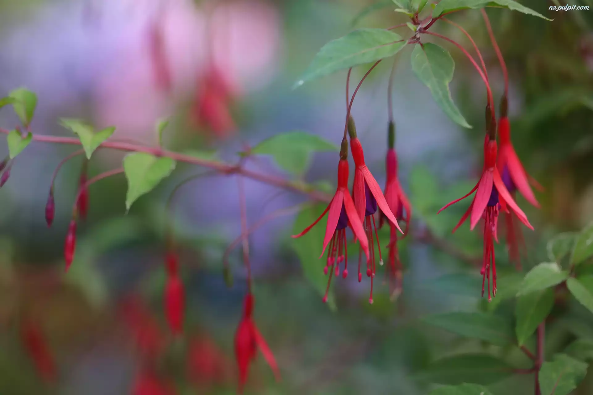 Fuksja, Czerwone, Kwiaty, Zbliżenie Na Pulpit