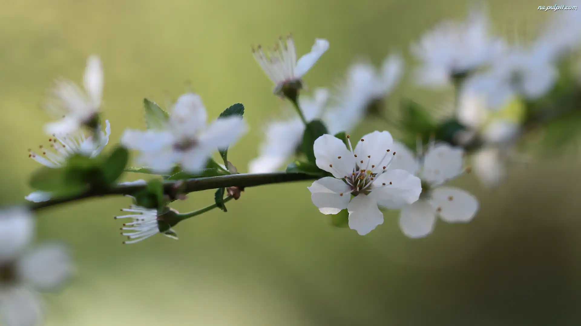 Zbliżenie, Białe, Drzewo owocowe, Gałązka, Kwiaty Na Pulpit