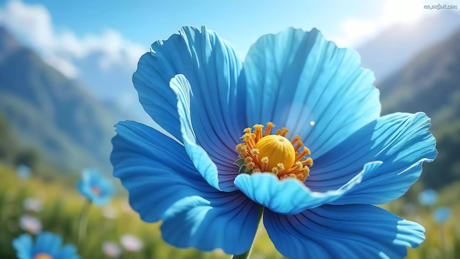 Kwiat, Mak, Niebieski, Zbliżenie Na Pulpit
