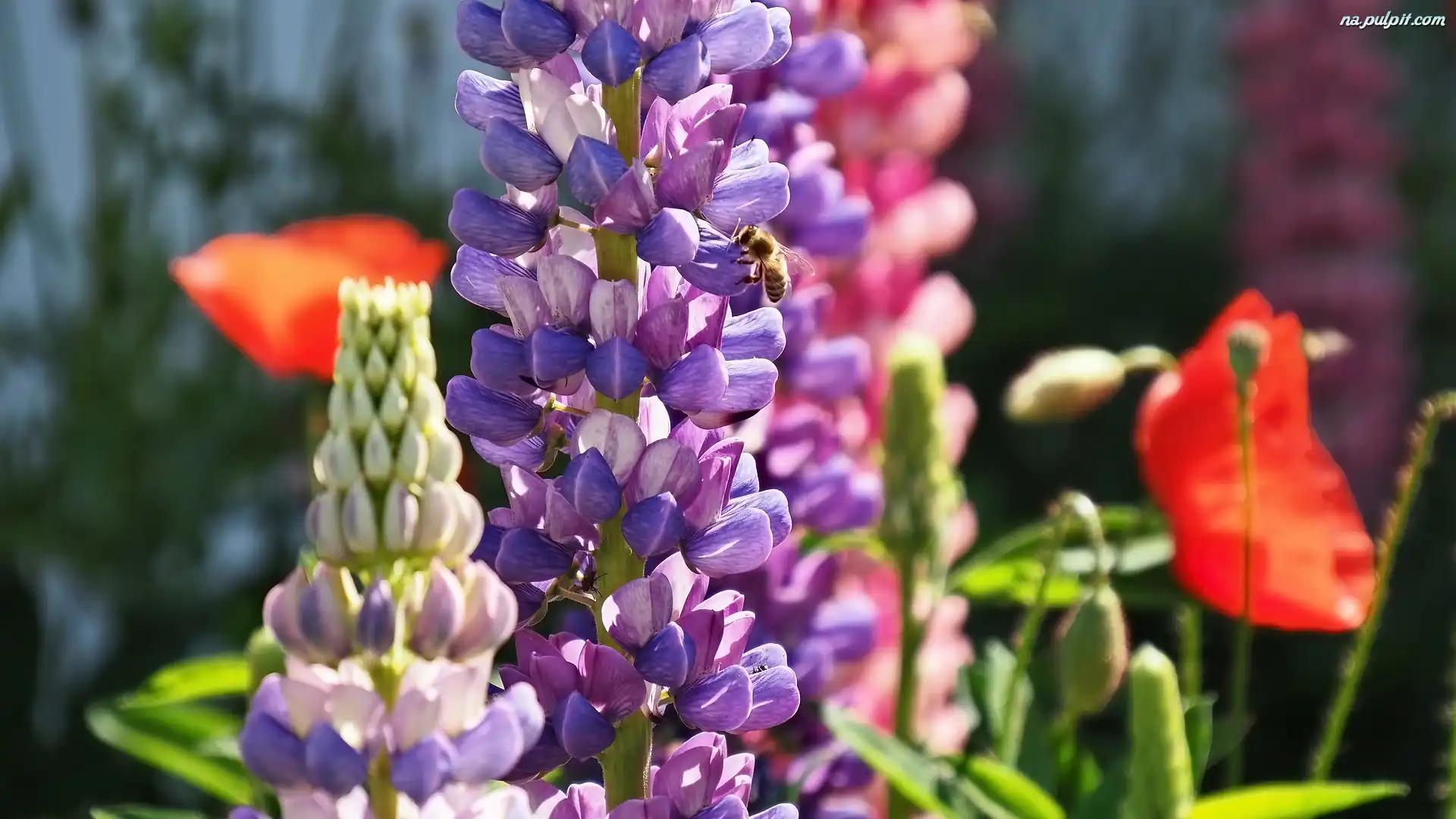 Kwiaty, Łubin, Mak, Zbliżenie Na Pulpit